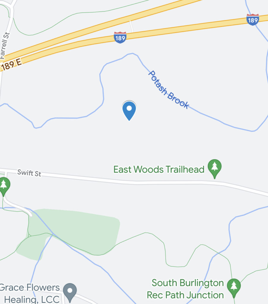 While I sat in the center of my site at Potash Brook, I felt at peace while observing my surroundings. I could hear the brook babbling past me, smell the bread wafting from Klinger’s Bakery nearby, taste the crispness of the autumn air, feel the cold rock that I was sitting on beneath me, and see the different types of trees and vegetation that surrounded me. I particularly enjoy visiting my site because of how it engages all of my senses. My 15 minutes turned into half an hour because of how peaceful this area is. It is really surprising to me that such a peaceful place could exist in such close proximity to a busy, urban area. Below is an image of an aerial map of my sitting space and the area around me.