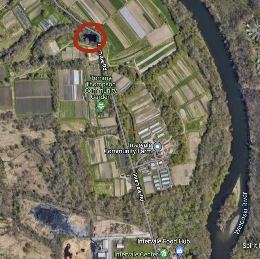 Burlington has many amazing natural areas to explore. I chose the Intervale because it’s not too far from campus and is near several different water features (Lake Champlain, the Winooski River, and numerous small ponds, streams, and wetlands). To get to my place, go down North Prospect street until it joins Intervale Road, then continue along the dirt road until there is a slight bend to the left. On the left side of this section of road there is a small pond covered in Duckweed surrounded by huge Eastern Cottonwood trees. I chose this spot because I think it would be interesting to study the effects of the surrounding farms on this pond, and because it’s a beautiful spot to sit, with numerous birds, squirrels, and other wildlife.
