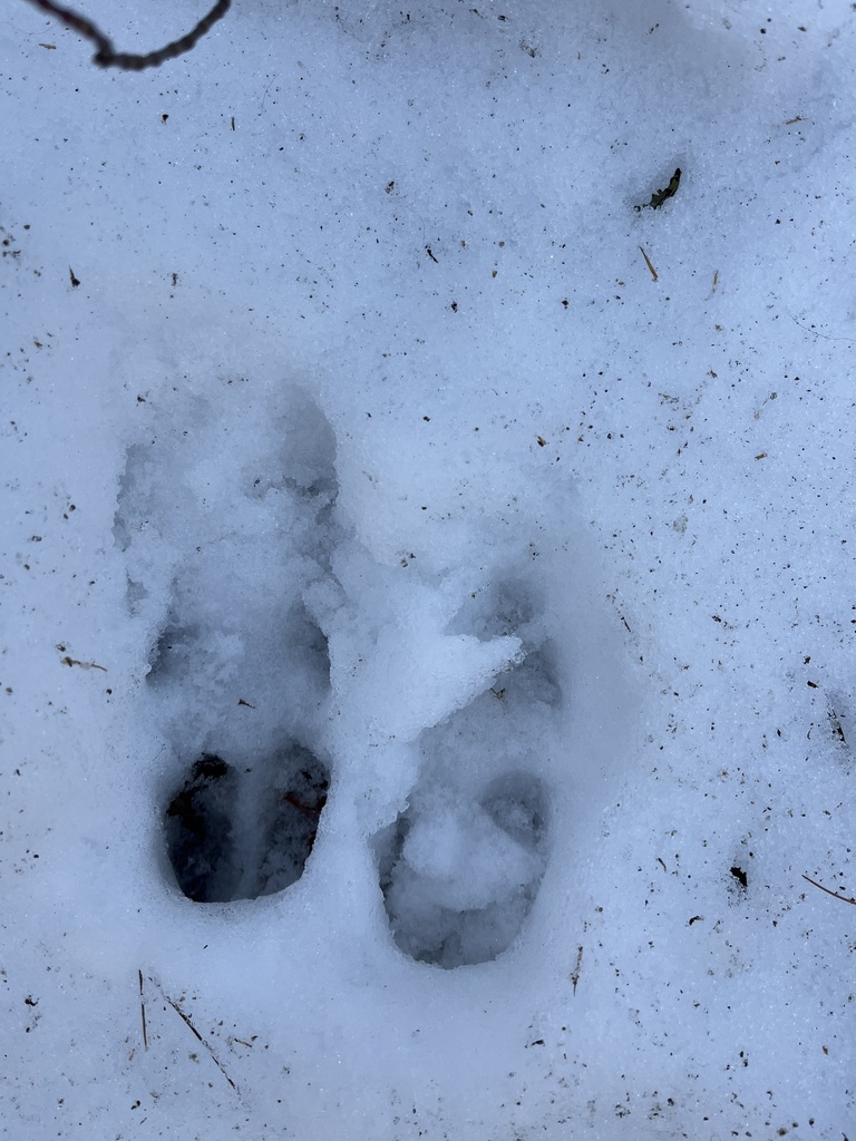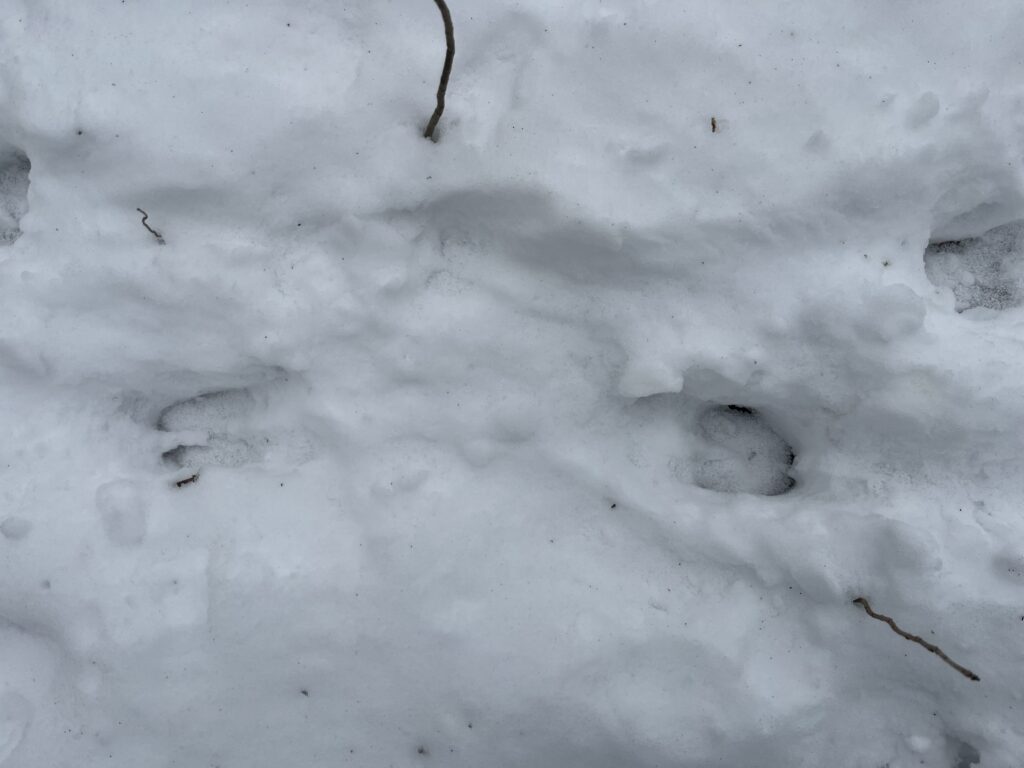 To find animal signs around Burlington, I went to Centennial Woods and walked on the trails towards the beaver pond and back. It was difficult to distinguish the many dog tracks present around the trail, but when I went further off the trail towards the brook, there was evidence of many small rodents under the snow, some deer, and a few sets of unidentifiable tracks that we weren’t sure about. I found that iNaturalist was easy to use, and it was simple to take photos and record my observations. Here are a few of the photos we took: