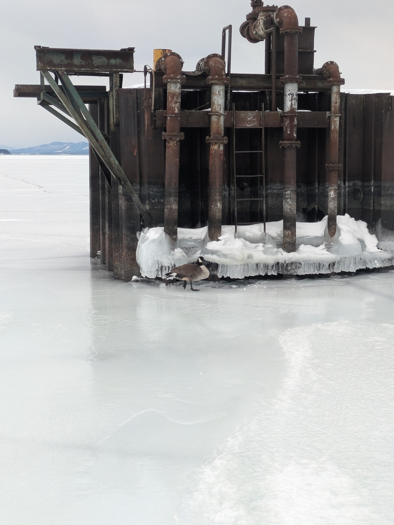 At Rock Point I only encountered a few tracks, but they were too damaged by additional snowfall to identify. However, I had another animal encounter heading back downtown by crossing the frozen lake. Here I saw a Canadian Goose.