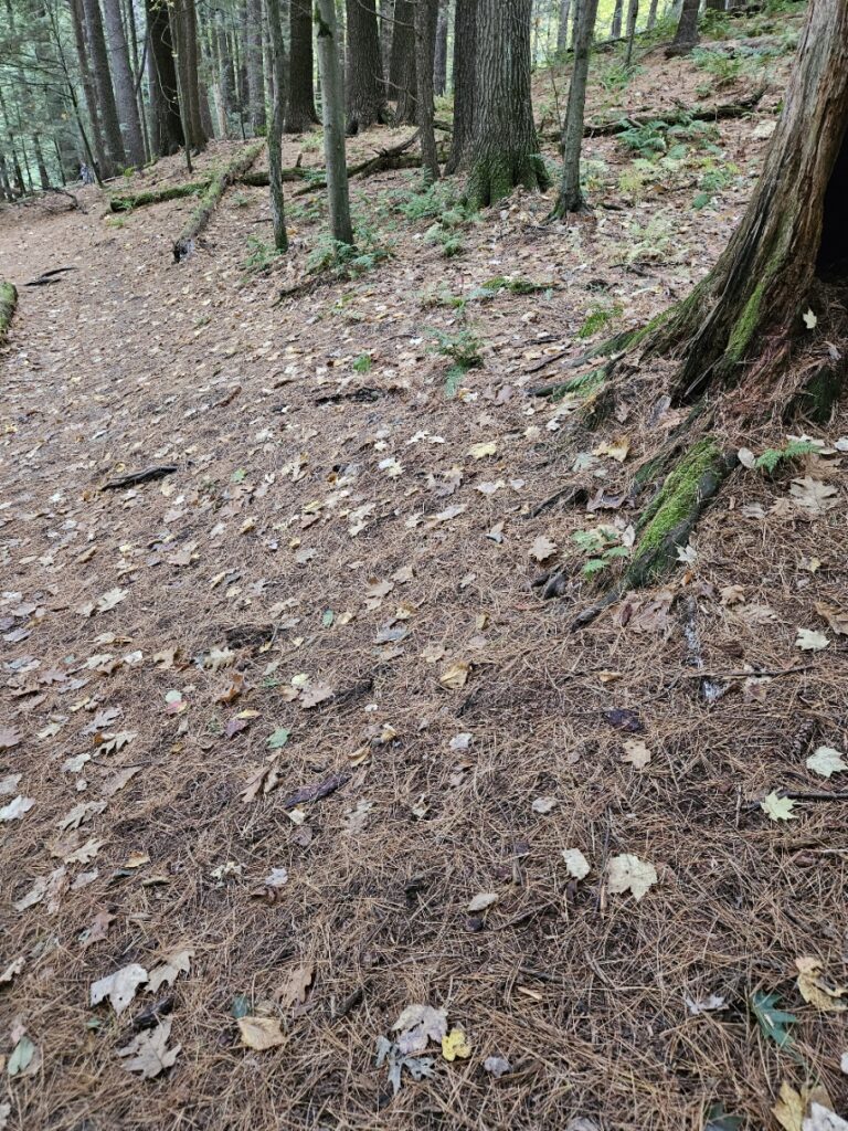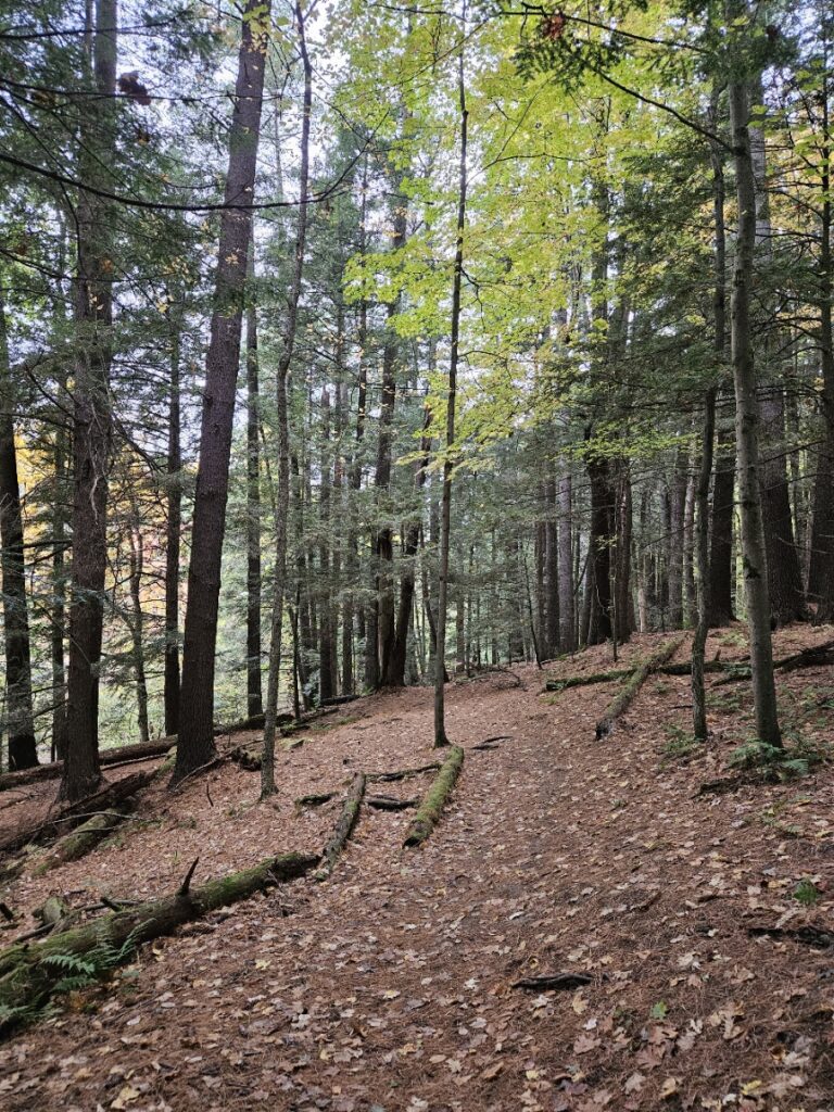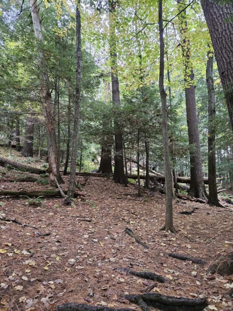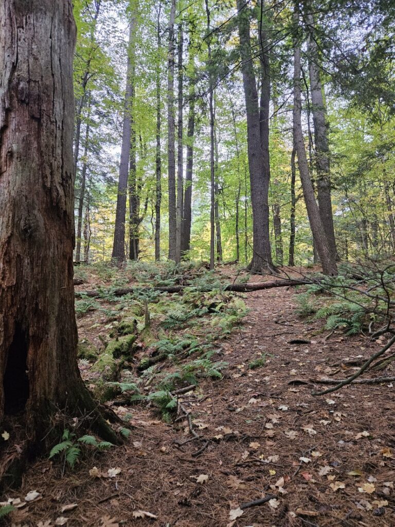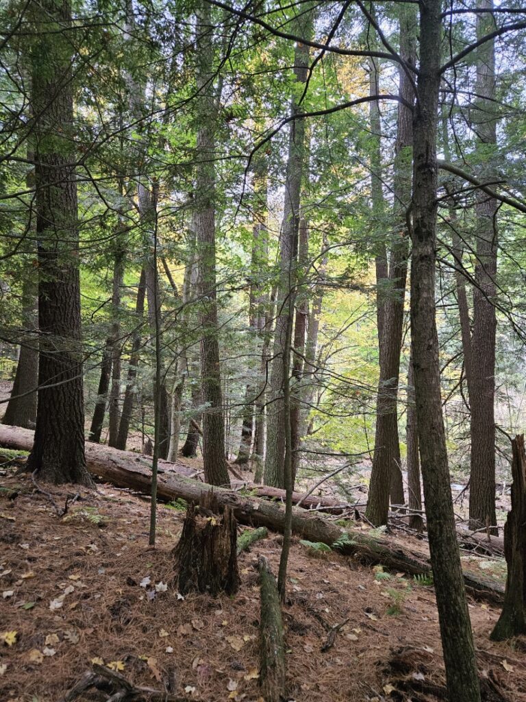 The smell of moisture clings to the air as I walk into this little alcove. It must have rained the night or morning before I decided to journey into this spot. The cool air stings my exposed arms like needles, but it isn’t as painful as one would think. The chill in the air is a sign of change– change of color and season. Indeed, wandering an eye across the canopy of the forest demonstrates these changes. The yellow leaves of the American Beech and the dulling green foliage of the Sugar Maple smile and wave in the breeze at my moving figure. At contrast to these changes, the green needles of the Eastern White Pine and Eastern Hemlock stand still, mocking the cruel progression of time. Even through the crunching of orange, fallen pine needles and yellow-brown leaves, the trees stand in rebellion to the adjudicator of life in time.