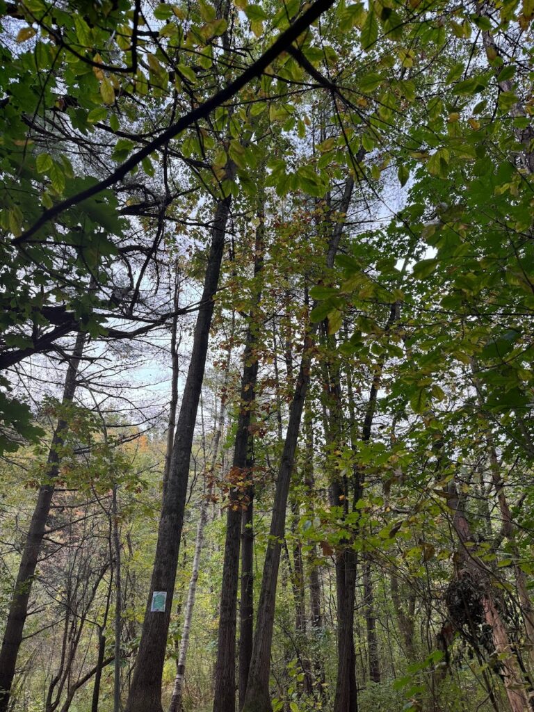 In contrast to Centennial Woods, there was a lot more animal activity taking place. At almost all points, a grey squirrel could be heard or seen rustling through the trees. Additionally, birds unseen in the trees seemed to be much denser than currently in Vermont.