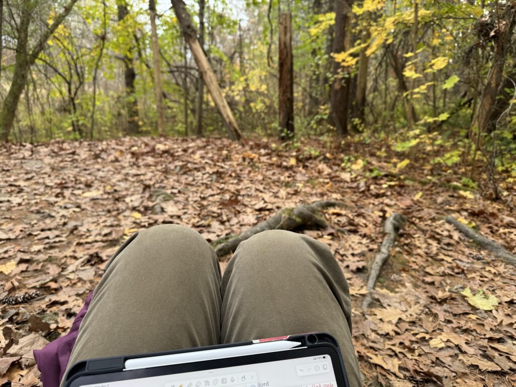 Today I visited Centennial woods in the same location as previously. The weather was a cool 45 degrees with partially cloudy skies. There wasn’t any wind where I was, so despite sitting on the ground for a while, the only part of me that got cold was my hands and increasingly slow fingers.
