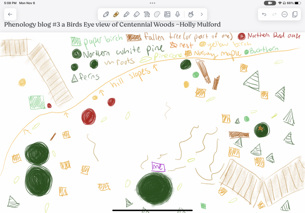 I chose Centennials Woods due to its close proximity to campus. Being a project that follows phenology, this location would allow me too watch the changes of plants, animals, and abiotic factors practically in my own backyard.