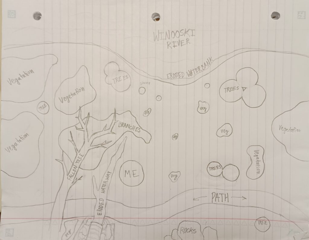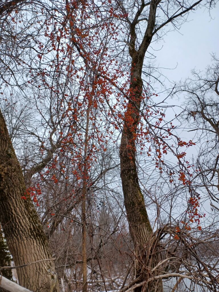 My final expedition of the semester took place on a very windy, very cold December morning, with a slight dusting of delicate snowflakes having already blanketed the forest floor. As I walked to Salmon Hole, I began to reminisce about the time I have spent this semester exploring my little alcove of land, tucked away along the Winooski River. At first, the long walk from UVM’s Athletic Campus to the Salmon Hole seemed daunting and extremely unappealing – but in my visits past, I have found myself becoming more and more appreciative of the journey. Even with the overcast sky, low temps and high winds, and almost completely frostbitten fingers, toes, and nose, I had a uniquely warm feeling in my chest as I approached the tiny sanctuary of natural beauty that I chose as my phenology location.