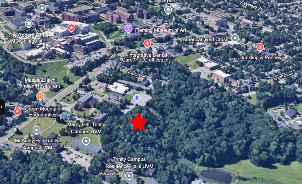 the spot I am visiting this semester for my phenology project is a small ravine in the woods behind Trinity campus. To get there you follow the path behind Mercy hall into the woods until you get to a small clearing. next you make your way down the side of the ravine until you reach the bottom.
