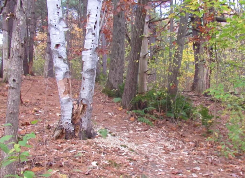 Throughout the month I have observed the physical changes of plant life in Centennial Woods as a result of the cooler autumn weather. The trees are beautifully colored red, orange, and yellow and are becoming more bare as the leaves fall. I also observed many young trees that were not able to survive with the weather change and older bent trees due to wind. Paper birch trees in particular are peeling more with pieces surrounding the base of the trees, as shown in the photo.