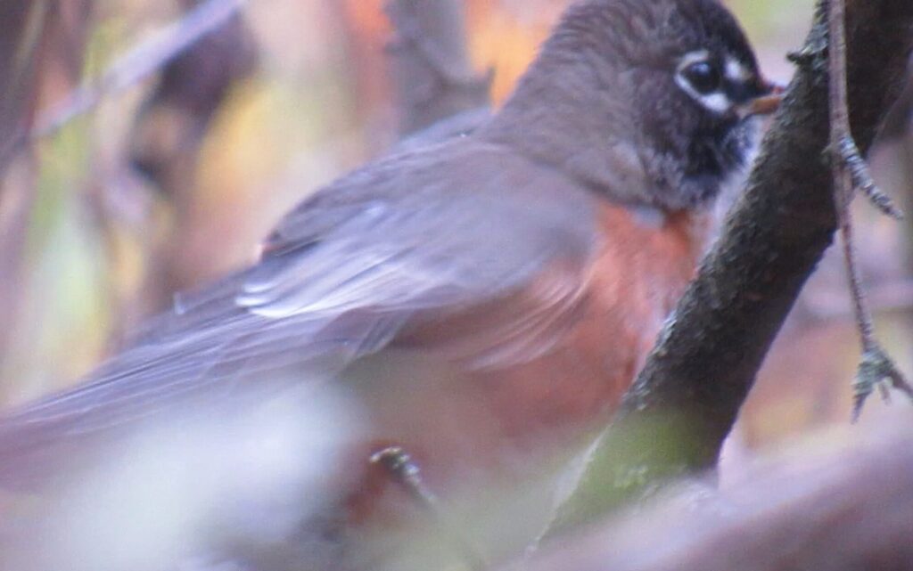 Centennial Woods are flourishing with a wide variety of birds. I have seen robin the most (shown in photo), I watched one swoop down to a small stream where it caught a small organism from the water then brought it back up to their nest. The largest bird I observed was a Great Blue Heron, these are common throughout the United States especially near rivers, wetlands, and streams. They can also be identified by their large distinguishable nests. Along with birds, small mammals in Centennial woods include squirrels, chipmunks, and beaver. It is easy to determine if beavers are in the area by the distinct cone shape left on tree stumps. Squirrels are very abundant and are found chasing each other up the trees.