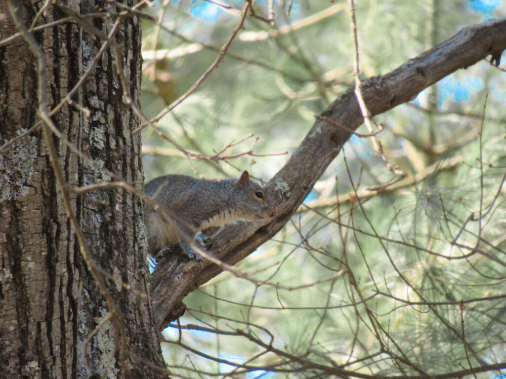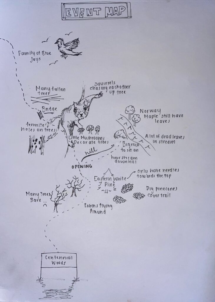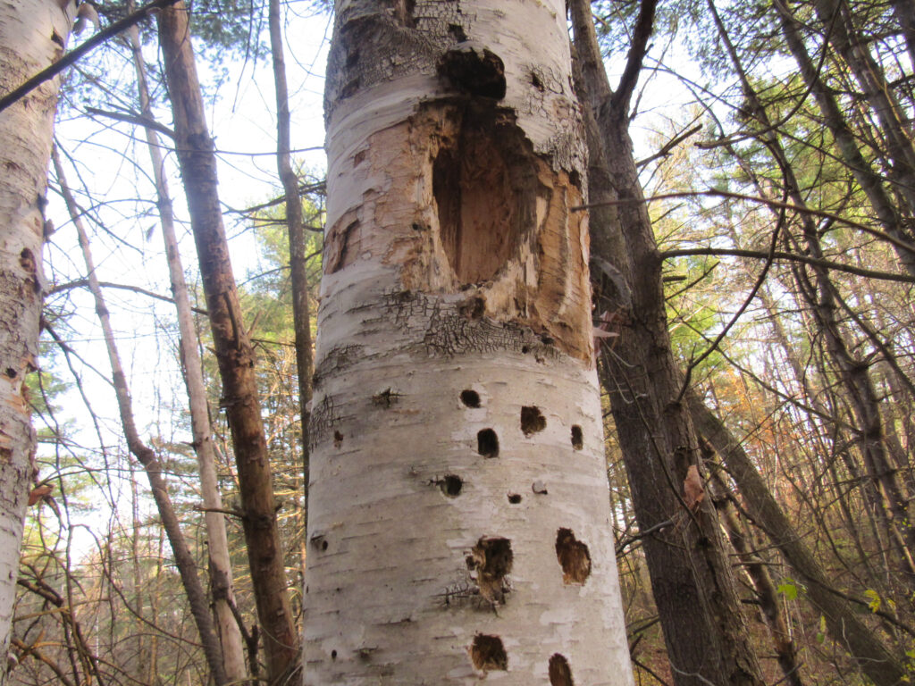 Since arriving back home, I chose to explore and deepen my understanding of the woods I spent a great amount of my time growing up in. Many summer days were spent with my sisters down by the swampy area trying to catch frogs and other creatures, and the hilly trails were perfect for sledding in the winter. For the first time, I examined the trees and discovered numerous eastern white pine, northern red oak, yellow birch, red maple, sugar maple, white oak, and boxelder. All of these trees are common in the Burlington area and I have observed during my time spent in Centennial Woods. The woods are never quiet, as I walked through I was surrounded by the calls of birds and noises of small mammals scurrying about, which I especially enjoy taking photos of and have added above. Similar to Centennial Woods, there is clear evidence of human interaction with the land. There are planks of woods as small bridges across the swampy ground, an old broken up picnic bench, and I saw a ledge to climb up onto on a large tree. This is probably for hunting considering deer are very common in the area and in these woods in particular.