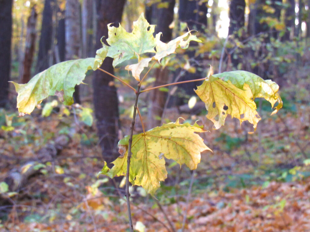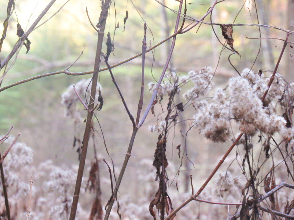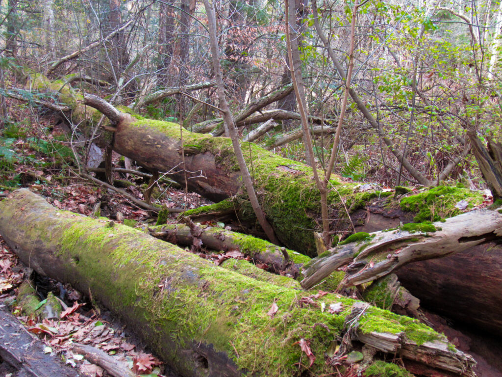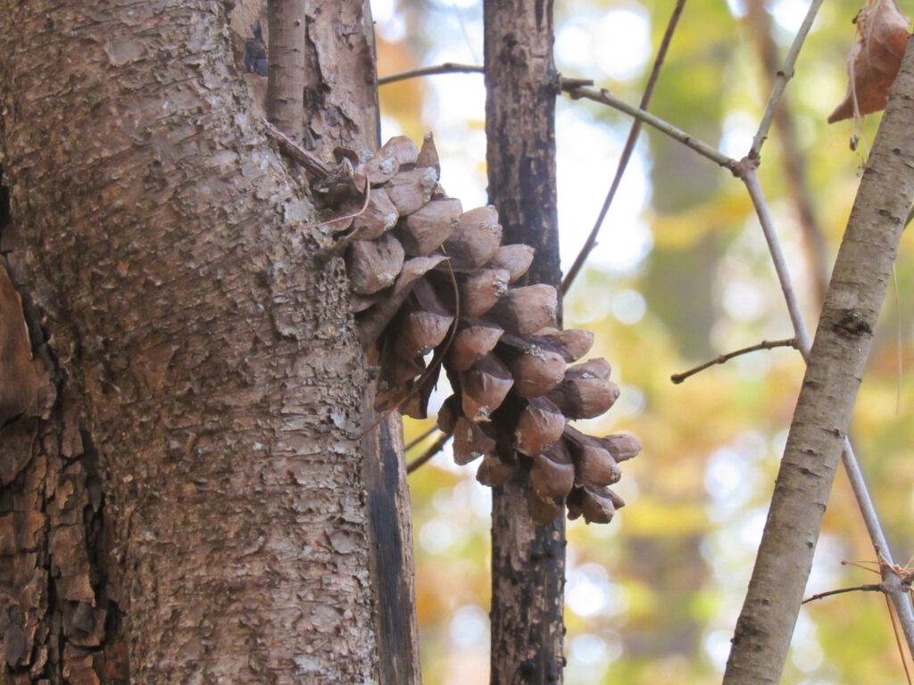 As the weather continues to become cooler, peak foliage has passed and the forest loses its color. Many deciduous trees have lost all of their leaves while others are still holding on, including Norway Maple. The needles of Eastern white Pine have receded upwards, only the very top has them. Since my last visit, there are many more dead fallen trees.