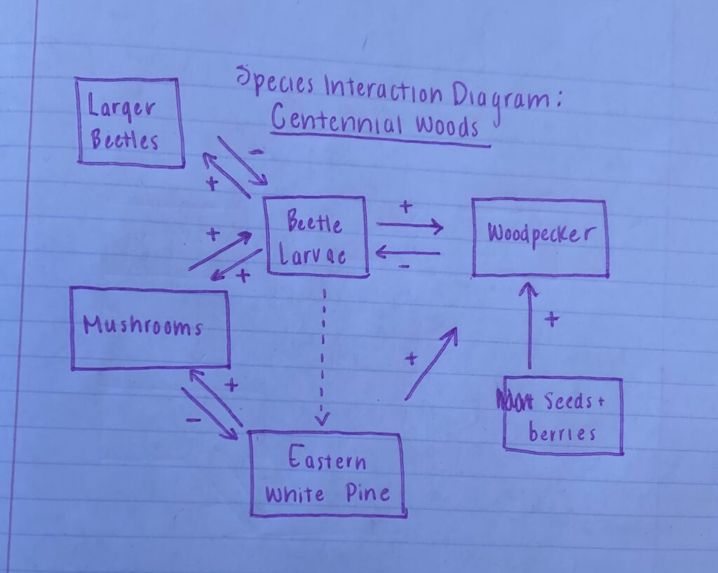 One of the most well known indicators/characteristics of spring is the emergence of buds. There were few leaves that are visible on deciduous trees throughout centennial woods, but the various buds and flowers indicate the forest will be vibrantly green soon. On a lower level, the forest floor has shifted from primarily dirt and organic matter to a dense layer small plants. Some are more abundant than others, and I sketched some of the common ones, attached above. The shift into spring is my personal favorite season to observe the changes in plant life. The forest seemingly rapidly becomes filled with new life and the regrowth of plants that became bare during the winter.