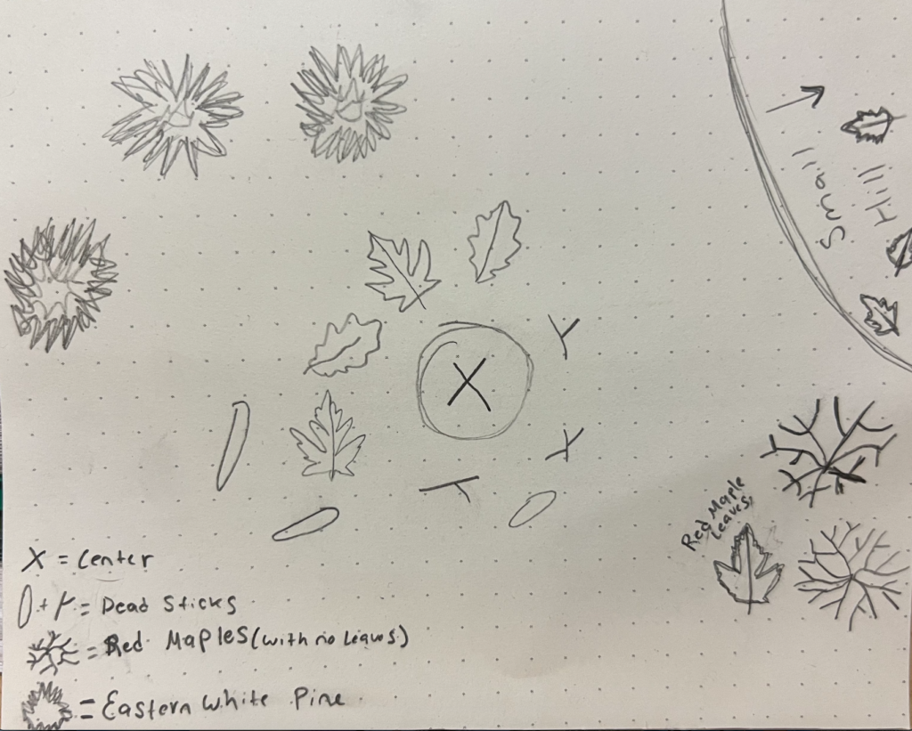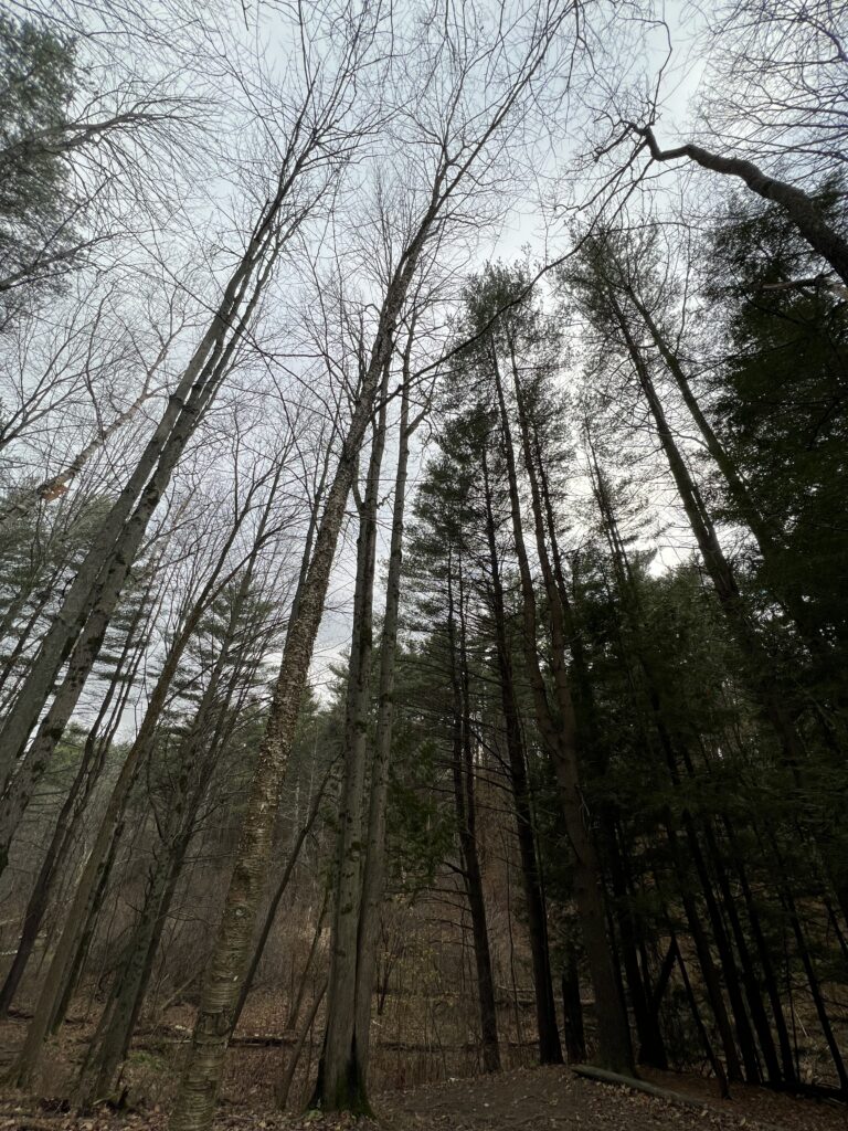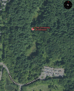 My place for this project is located in Centennial Woods. To find this area, first, you have to go to Centennial Woods entrance found across from the UVM parking lots and follow the dirt path made by NR-1 students. If you keep following the path you will hit a small body of water, cross that bridge a keep walking up the hill! You will then reach my location. It is a big open area filled with many different types of trees and woody plants!