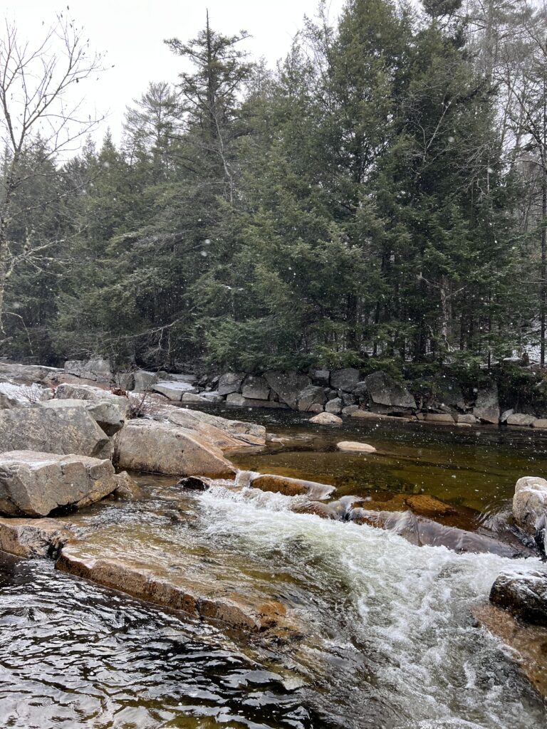 Jackson Falls is much different than Centennial Woods In VT. Jackson Falls is much more water dominant, while Centennial Woods has more land. Jackson falls has sandstone rock slabs and bedrock, there are also plenty of pothole pools! Some types of trees that I saw were Eastern White Pine, Northern Red Oak (deeper in the woods), Hemlock, and Paper Birch. While In VT, we see the same trees, Eastern Hemlock, Paper Birch, Red Maple, and Eastern White Pine.