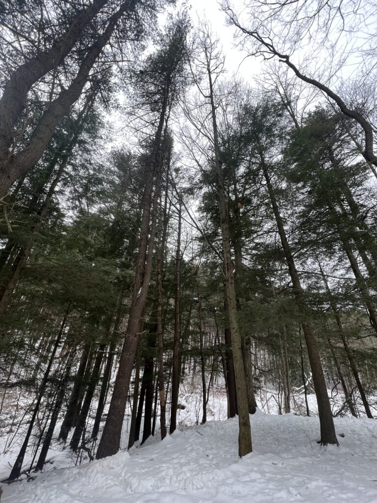 Coming back to my spot since December, there have been some changes. First, these are a lot of snow and it’s a little icy. With the snow im able to see how many people come to this location based on footprints, both human and animal! Based on the pictures above, some people had enjoyed making snowman! In the pictures you can kinda see all the human foot prints. The area definitely gets more sunlight now because of how open it is.