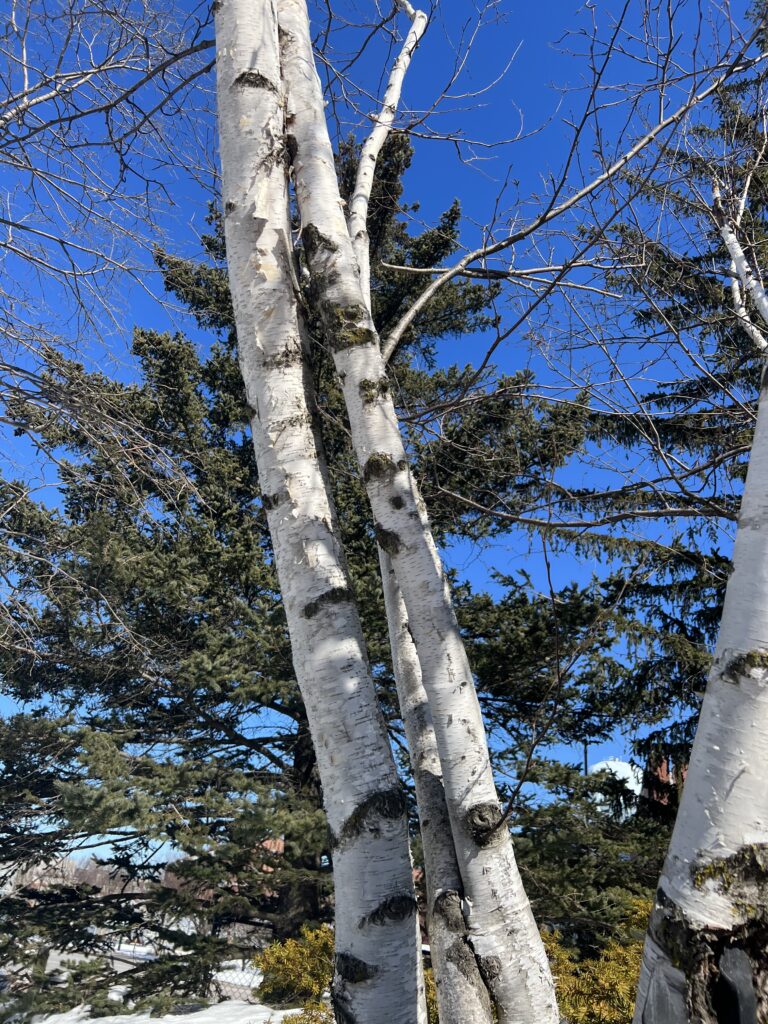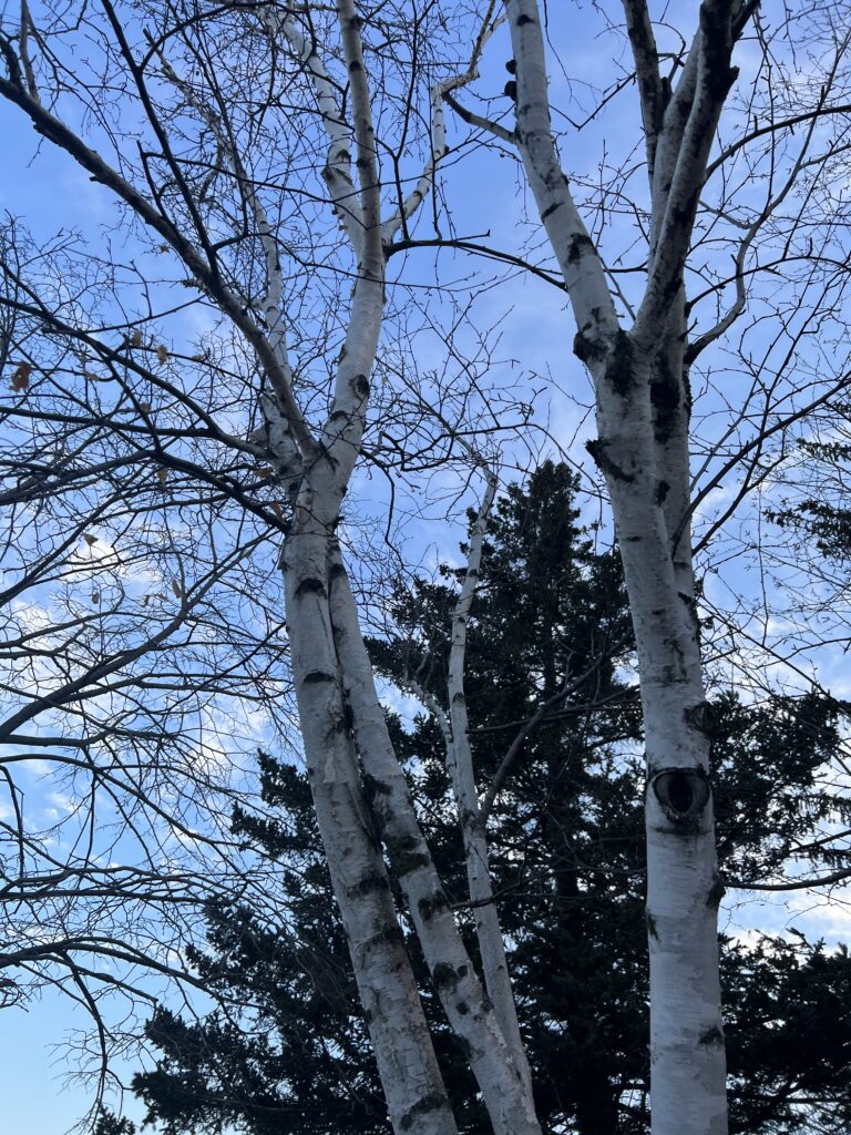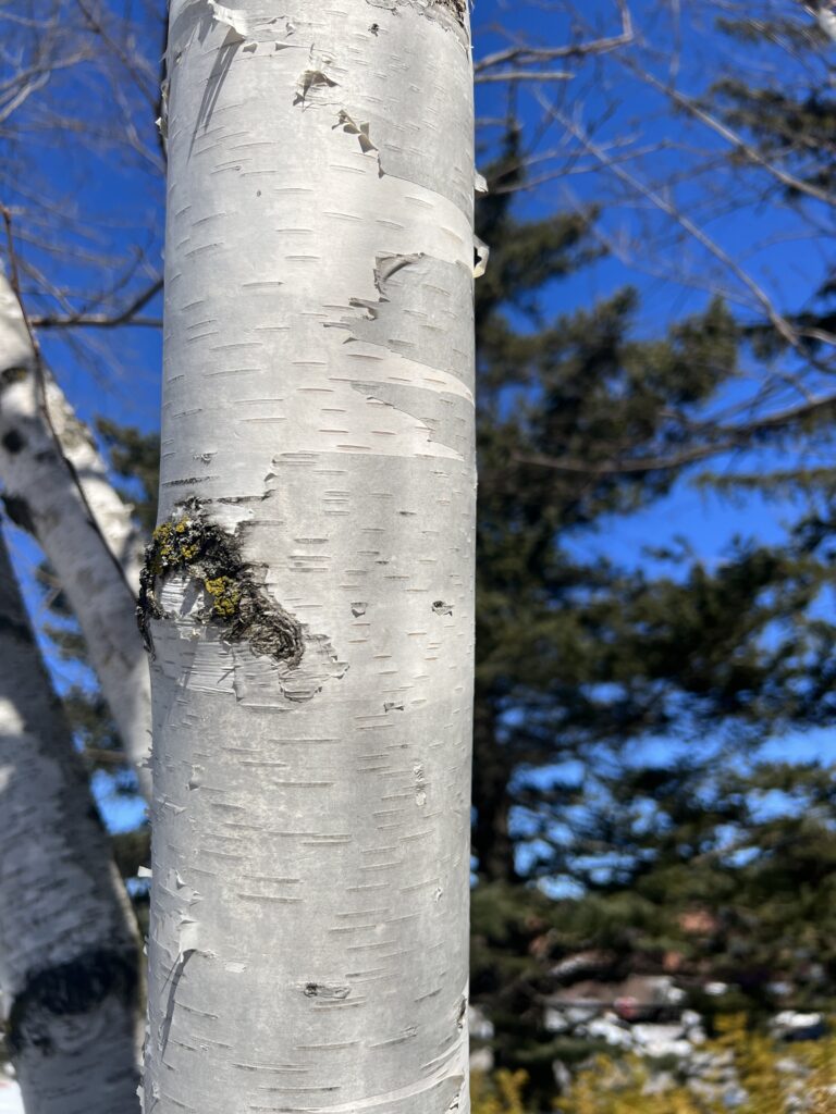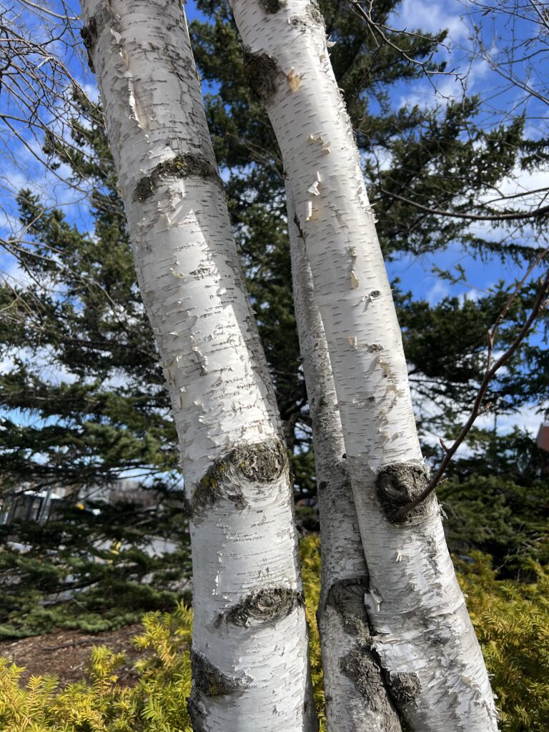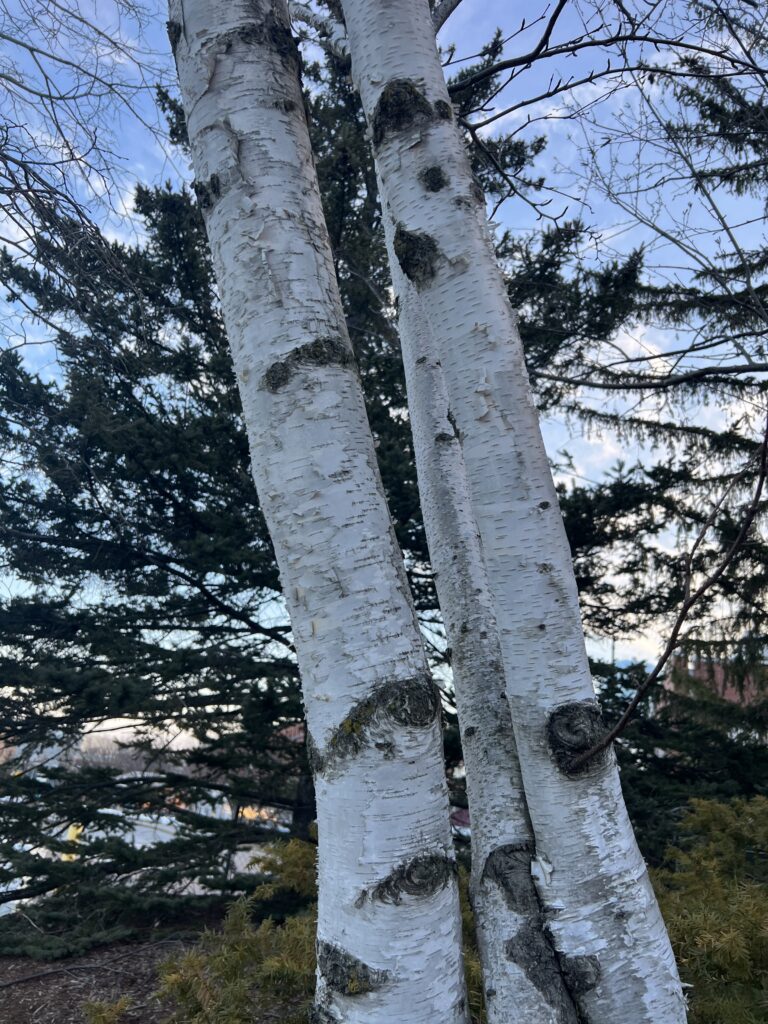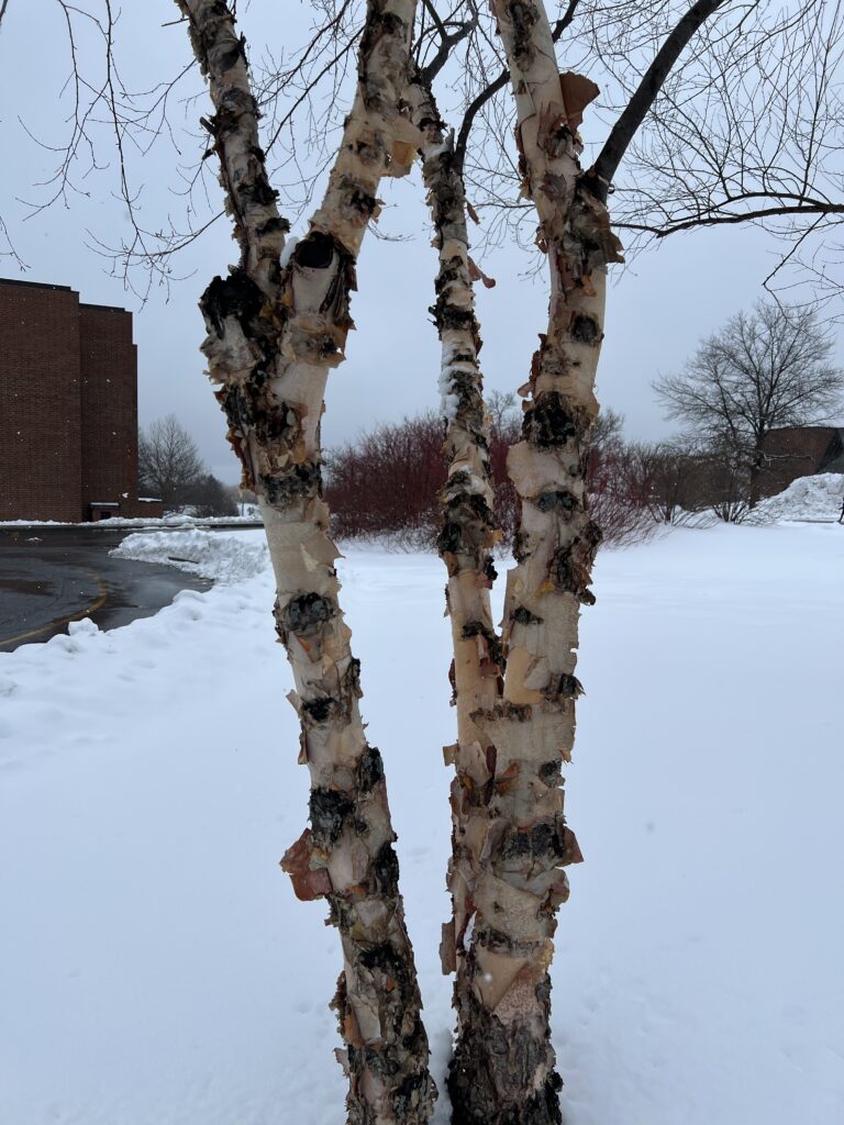 For this assignment, I walked around campus to find myself by a paper birch tree. The way I eliminated the lookalikes was based on the tress bark. I knew that is couldn’t be gray birch, river birch, or yellow birch because of its white peeling bark. While the bark of the Yellow Birch is more bronze in color, and it peels off in thin papery ringlets. As for gray birch, the bark is typically shiny red-brown or often pink-white or silver-bark. And finally river birch has a cinnamon-colored bark that curls and peels. Another give away was how thin the bark was peeled off. There were no leaves or catalyst so I could decipher between those two but the only other way would be the twigs and buds. Yellow, paper, and gray birch twigs have alternating buds. Im not the best with twig identification so I stuck with what INaturalist told me and my identification on the bark. There was no evidence of flowering!