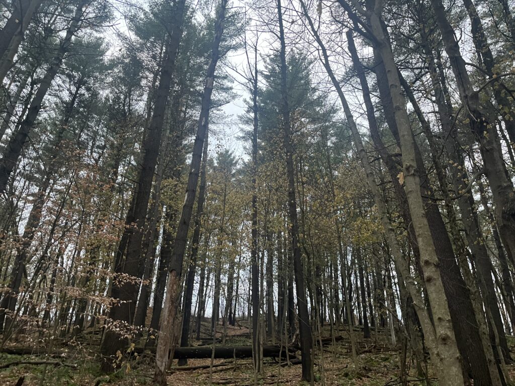 ╰┈➤ While the areas surrounding my spot are incredibly barren save for the coniferous trees, ferns, and clinging grasses, my spot is still hanging on in the early days of December! In Figure 1, the succession of the forest is shown extremely clearly; the surrounding young red maples have sparsely dispersed yellow leaves and the others have mostly completely lost their leaves, which joins the wet and decaying leaf litter. Said leaf litter is being patted down by rain and snow and will eventually create a lovely O layer for the soil and act as insulation for many burrowing animals. The tallest trees are the eastern white pines that, of course, still have their leaves.