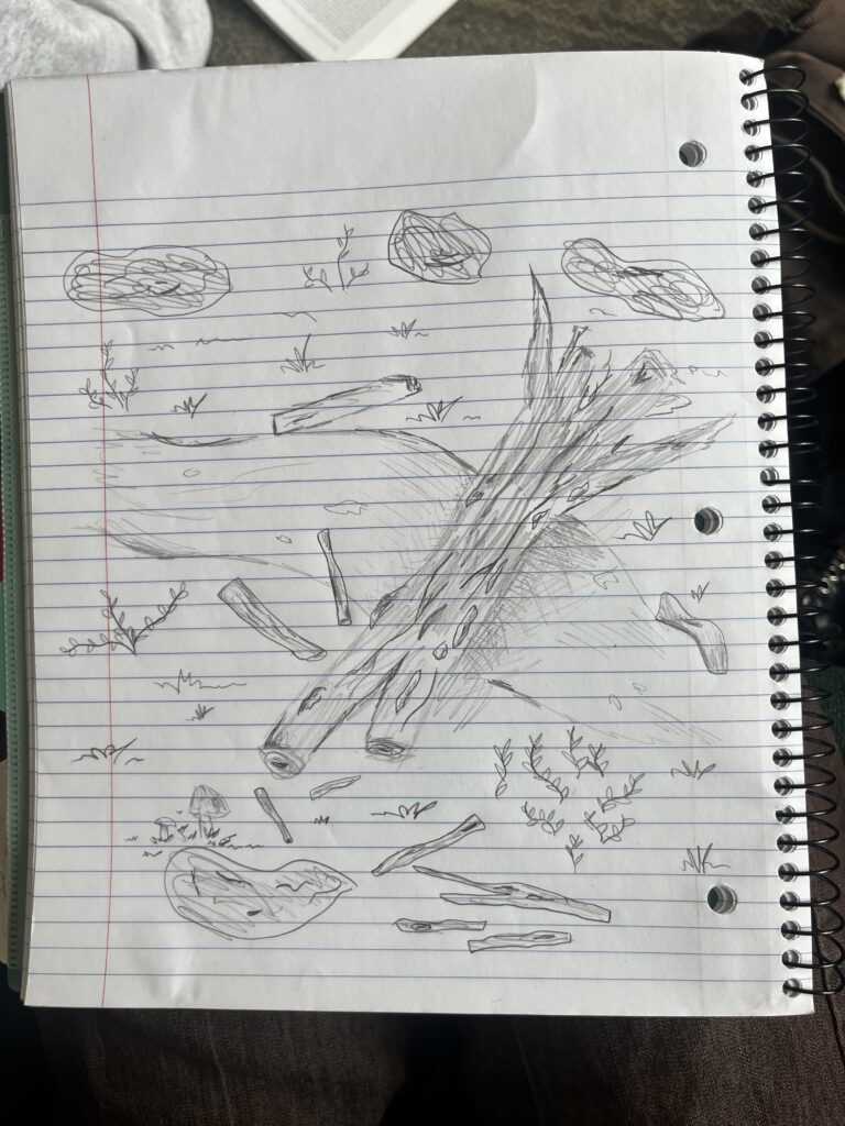 The most major landmark of my spot is obviously the fallen log with the mushrooms growing on it. It’s so large that even small changes are very visible. Some smaller landmarks are the patch of ferns, the tree with holes in it, and the path leading to the rest of Centennial Woods.