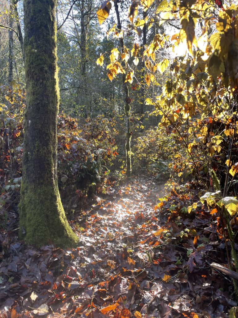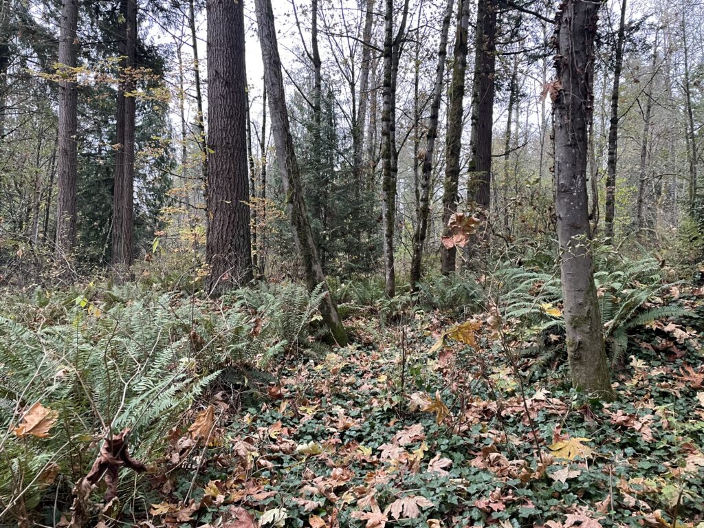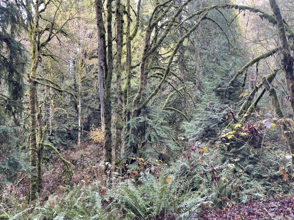 On November 21, I spent time in my new phenology location which resides in the dense forest surrounding my house in Seattle, Washington. This area is special to me personally as it is my safe place where I spend a large portion exploring and appreciating nature. It is also a very biodiverse region which has led to the development of a very popular travel route, feeding, and resting area for wildlife.