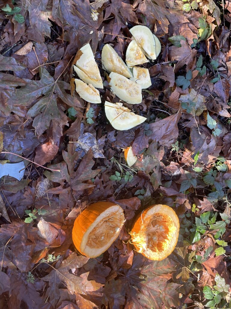 • I brought two untouched pumpkins (were going to be taken to the dump) and put them in my location in order to provide food for wildlife and provide rich organic material to the soil