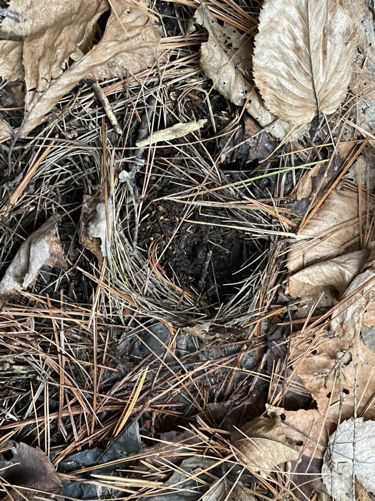 • Organic Material: There appeared to be no new fallen foliage on the forest floor. However, there were signs of decomposition as the eastern white pine needles that were on the bottom of the foliage pile had turned brown and were decomposing. There were no signs of decomposers from my observations.