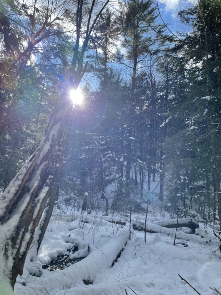 My experience revisiting my tree was slightly strenuous. Despite the rising temperatures and the snowmelt around campus, the forest has kept large portion of the snow frozen. Additionally, the constant melt and refreezing led ice to cover all of the major pathways, making it difficult to walk! Nevertheless, the landscape was beautiful and I enjoyed my time!