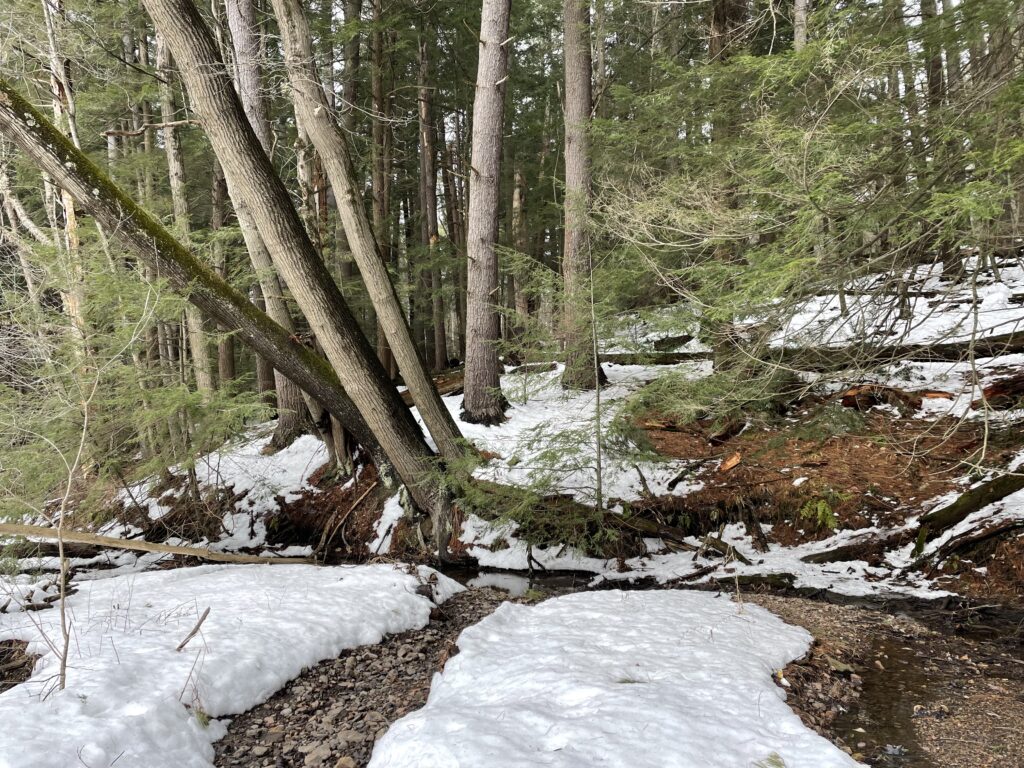 • Plant and Tree Species: There were no changes with regards to the tree species in my since my last visit. I was unable to assess organic material and potential understory conditions due to the high volume of snow.