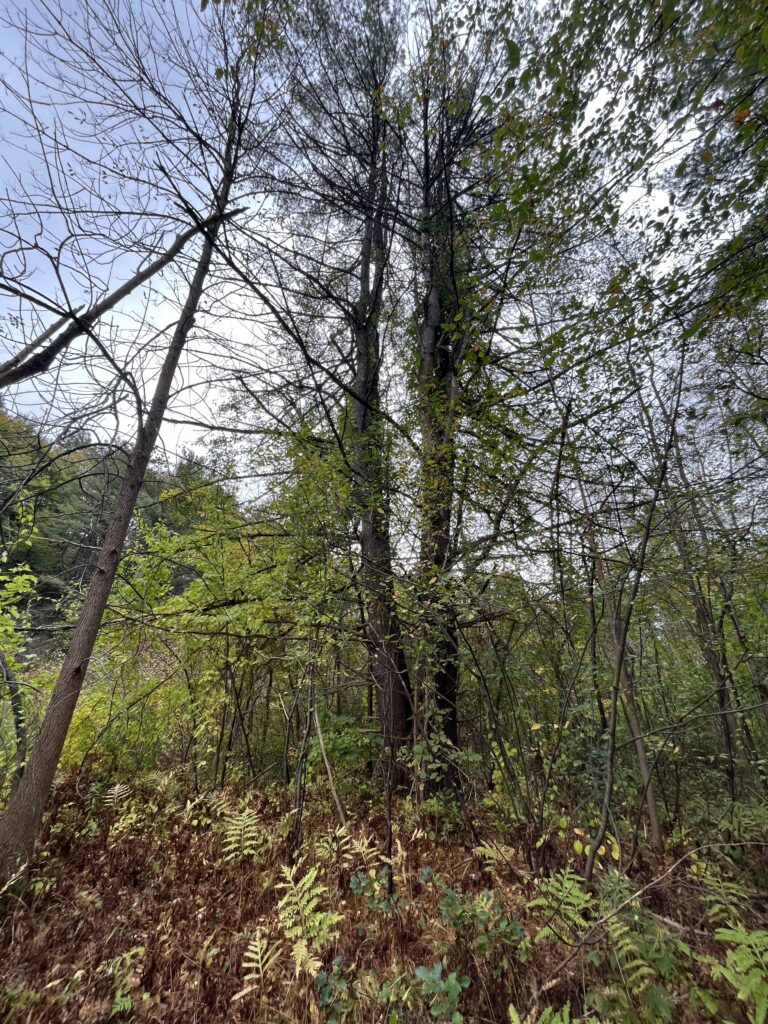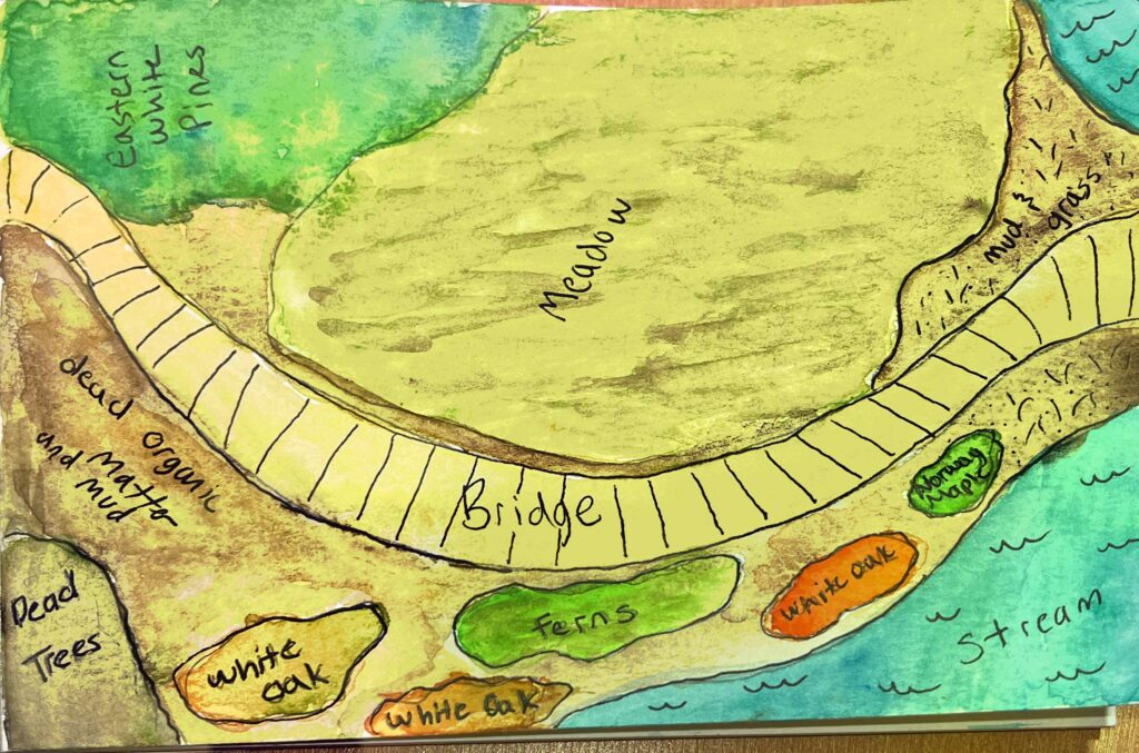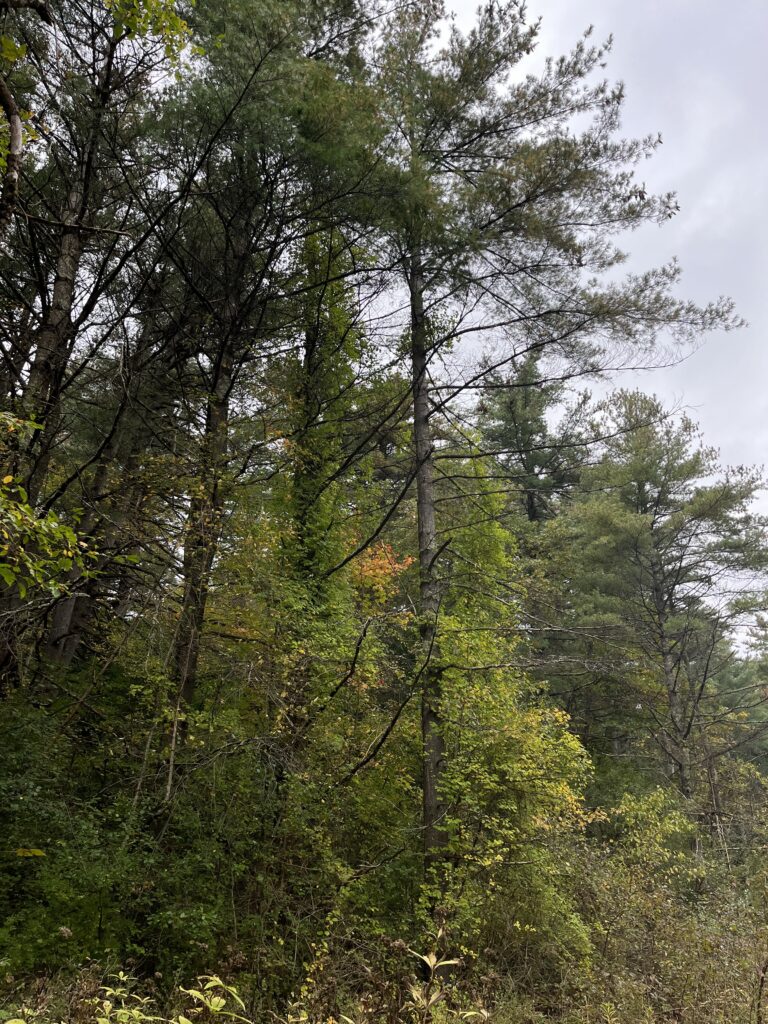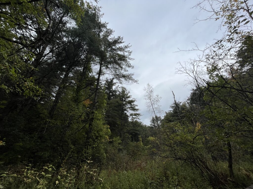 Some landmarks I have become familiar with are certain trees on or next to the trail, the meadow, and a certain tree across the stream. In the beginning of the trail, there is a partially fallen tree that I always go past and further down the trail, there is an eastern white pine that is in the middle of the trail. This tree is in an area of the trail where the trail splits. The Meadow is a major part of my phenology spot as it is the most open side and noticeable when at my spot. I have been able to see the changes of the different plant species in the meadow throughout the season while the eastern white pines remained the same. A little past my spot there is a single tree (I’m not sure what species the tree is) that usually has bird feeders on it.