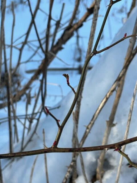 This is my last time for this year going to my phenology spot! It is now spring and almost summer, which means new changes in my spot at Centennial Woods! At my spot, there is no more snow, but lots of muddy spots along the trail. There are also buds that are blooming or almost done blooming. Unfortunately, I could not identify what tree or bush species the buds were. There was also lots more grasses and shrubs beginning to grow along the trail and in the meadow area.