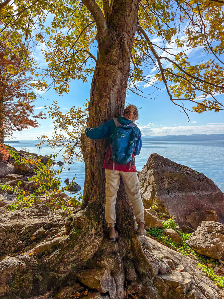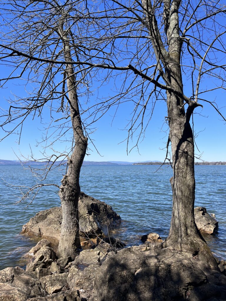 The pines, cedars, maples and oaks flourished in the lushness of big, green mature leaves. The land itself felt like a ying-yang of green and blue. Blue, from the sparkling Champlain lakewater. Green, from the forest towering above the reverse thrust fault line, speaking through rustles of inhabiting critters and leaves.