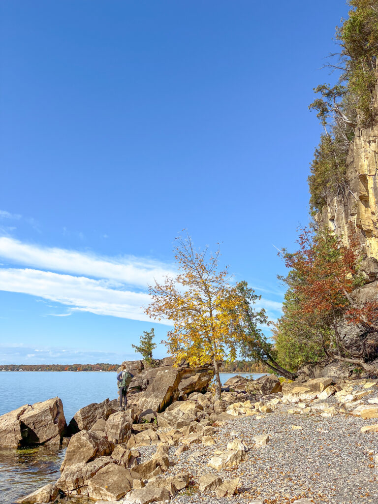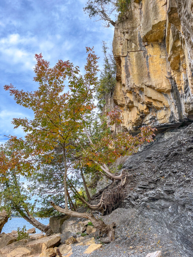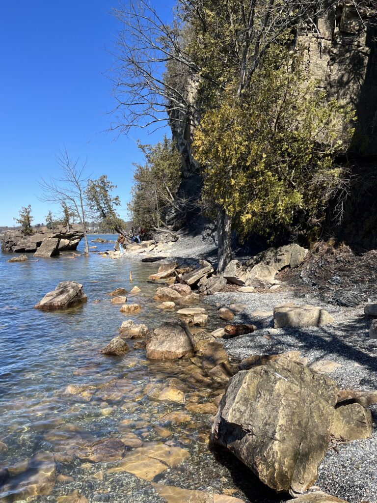 Other minor landmarks could consist of a large log placed along the shoreline and the cedars growing out of the dolostone. The major landmarks consisted of the large boulders of dolostone that had fallen from the thrust fault, and the reverse thrust fault itself. There was also two maples that stood out on the shoreline of Rock Point itself, acting as a key measuring tool to the seasons Rock Point was currently existing through.