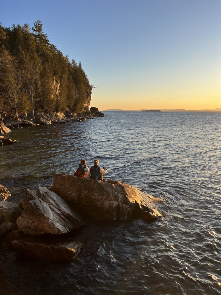 At the end of the day though, this place never fails to take my breath away. I never thought Vermont could have a natural landscape like this. I love being surrounded by ancient, exposed rock, and the idea of such a violent force creating a beautiful landscape peaceful and intimidatingly powerful. I think I enjoy the water the most about this spot. It not only acts as a memorial to the ancient sea that once swallowed all of Burlington, but keeps Rock Point alive. No matter the weather, Rock Point always experiences change and movement. The waves from the water pound on the surface, sculpting unique shapes of Iberville Shale and Dolostone. The water is what also creates the wind this place experiences annually, and the wind is what designed the curving trunks of the cedars, oaks and pines. All the pieces that compose Rock Point work with one another, and I find that both fascinating and satisfying. Rock Point is a sensual experience, for the eyes and ears. Hearing the wind and water while watching the sunset behind the Green Mountains gives me this thrill and call to adventure I’ve never experienced before, nor thought I could.