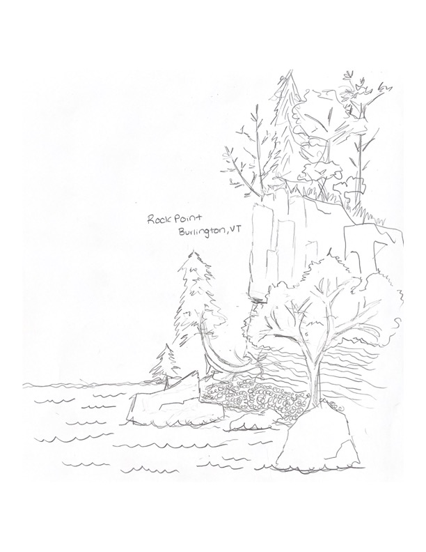 I chose Rock Point for its complex placement within a human-environment relationship. Rock Point resides in Vermont as a sanctuary for the epiphany of a human-environment connection. Its uses vary greatly, as can be seen when wandering through the Rock Point Center. It is a source for education, with its school establishments and research centers. It is a place of environmental supervision and sustainability, with its communal gardens and solar farms. But most importantly, it is also a home, protected as a conservation land for hundreds of endangered species and ecosystems. Life thrives at Rock Point Center, for all sorts of organisms including humans. I also chose Rock Point for its simple beauty. It genuinely has a little bit of everything, from the shoreline to cliffs, to forests. The soothing sound of the lake shore against finely eroded chips of Iberville shale. The uniquely curved White Cedars that grow off the sides of the rock, and the thrust fault itself composed of a vibrant agglomeration of colors. It’s a majestic piece of natural artwork that intrigues me for it to look so strong and yet so peaceful. I want to learn more about how such a vast range of natural structures in such a small space can work cohesively and depend on each other, including the ecosystem found within.