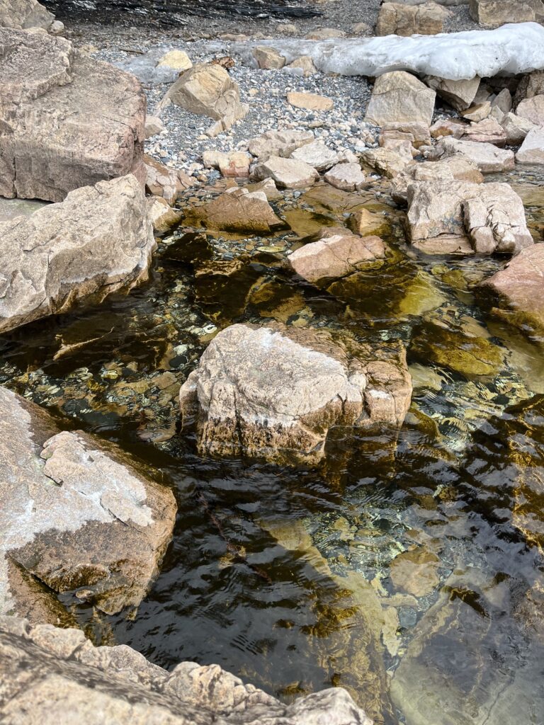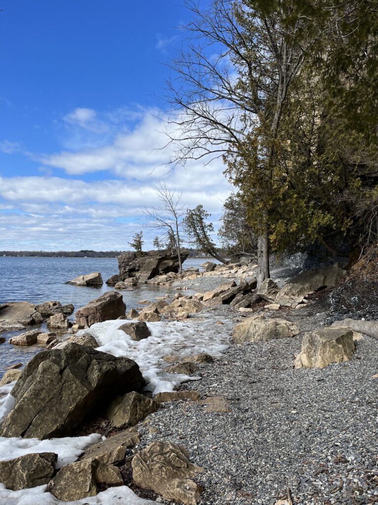 Besides that, upon visiting the actual site, there was not much of a noticeable change in the landscape. Besides the sunny day and stronger winds, the one change I could identify was the melting of the ice surrounding the shoreline (shale in direct contact with the water).