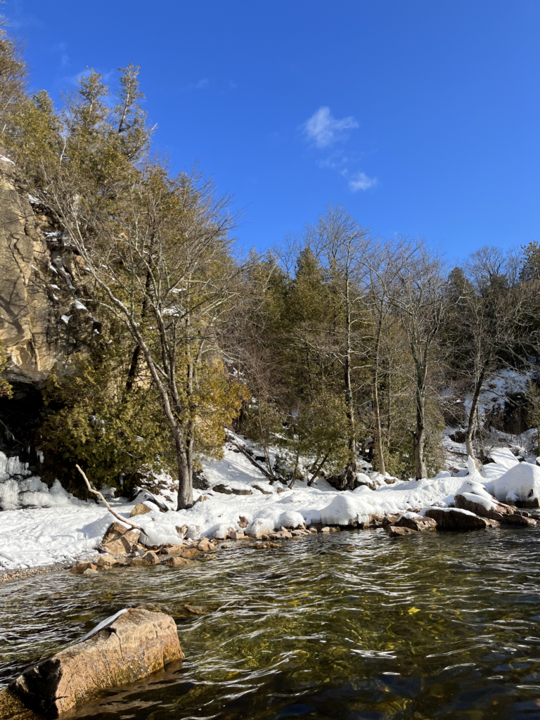The two locations I selected for my phenology study have a clear trend that has to do with water. Due to the winds and temperatures of winter, the vegetation in both places has lost its color and greenness. Rock Point and BayView Beach both contain unique bodies of water, which has a significant impact on the make-up and structure of their natural foundations. Under a striking fault line, freshwater impedes on the stony Iberville Shale shore for Rock Point. The striking reverse thrust fault that runs across this beautiful area has a big effect on the vegetation that grows there. Down the steep slope leading to the thrust fault, White Ash, Red Maple, and Red and White Oaks grow together at the base. What makes Rock Point so intriguing is the Northern White Cedar that grows off of the Dunham Dolostone rock, not just at the base but also on cliff points. The trees give the Wild Turkeys, Black-throated Blue Warblers, Tufted Titmice, and Goldfinches living in the forested areas of the seashore plenty of nuts and acorns. Moreover, the trees provide mice, chipmunks, and squirrels with a predator-free haven.