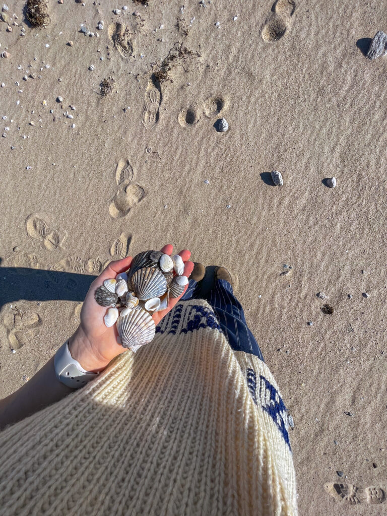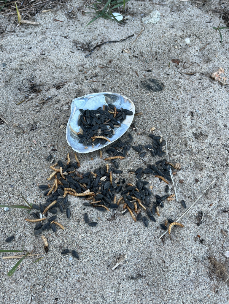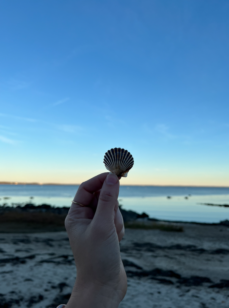 The chapter Honorable Harvest, from Robin Kimmerer’s Braiding Sweetgrass, inspired me to give a gift back to this place that has given me so much. I left some birdseed in a shell I collected years ago from this beach, for the sparrows and peckers that live in the bramble on the shoreline.