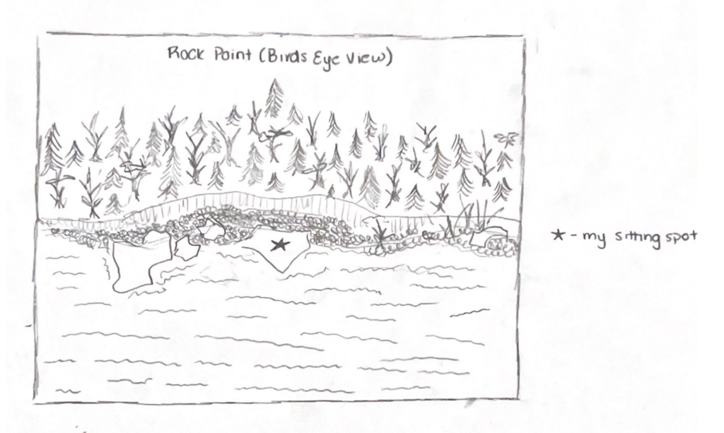 There is constant movement at this place. But every element blends together, and each identifiable pattern is a puzzle piece to an overall process of everlasting reformation of the natural landscape. The temperature was warm but strongly windy, and I felt vulnerable to its heavy force as it continuously tousled my hair. The trees around me remained strong and poised, despite the harsh winds pushing and pulling at their bark and leaves. The air was saturated with the smells of fresh pine and earth, whose scents had been awakened from the rain the previous night. I heard the strong ruffling of oak leaves, and watched their department from branches, as they drifted off into the wind. On this trip, a phenological change was happening right before my eyes, with leaves detaching from branches, causing Rock Point a loss in diversifying fall foliage and greenery. Overall though, my senses continued to gravitate mostly towards the water. I noticed the water-logged remnants of oak and cedar logs, and how their placement on the shoreline had moved upwards, farther away from the water. The waves were a bit chopier today, sporadically crashing into large chunks of dunham dolostone, and spraying some of the bark of the northern white cedars. I loved hearing the rippling waves and watching the mist on its crests drift through the wind to spray my face, as well as rocks and trees. Everything felt so peaceful. Despite the piling of different noises, scents and feelings, everything continued to remain as one. All elements blended together, and I felt so at peace, sitting on a block of dolostone with my eyes closed, listening to wind and water change the setting while the sun’s glow warmed my face.