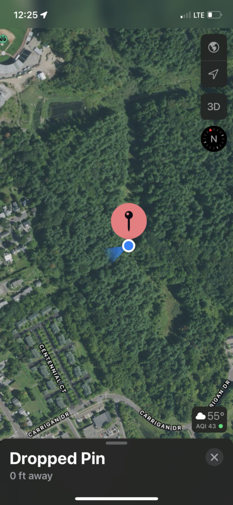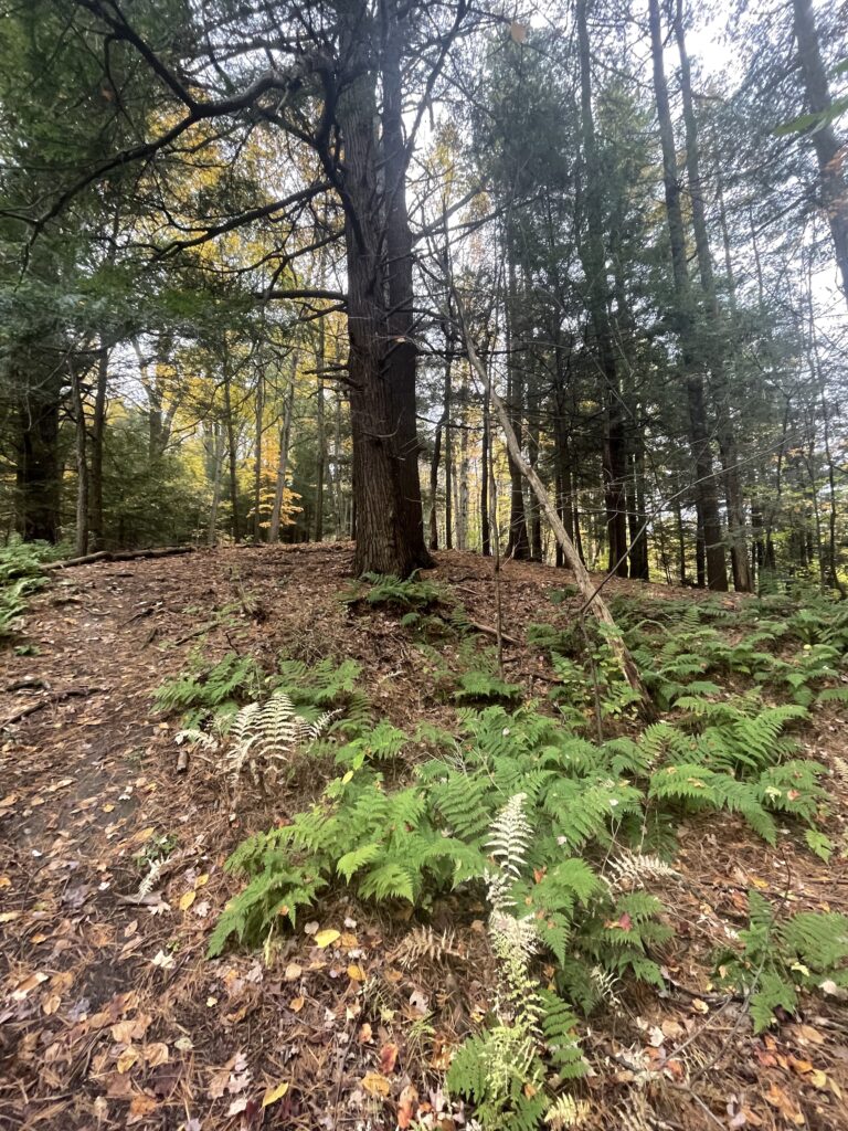 The significant landmarks I became familiar with were the entrance sign and the large fallen trees in my area. The smaller landmarks included small and large trees, the muddy ground my tree was in, and the small downhill my tree was on.