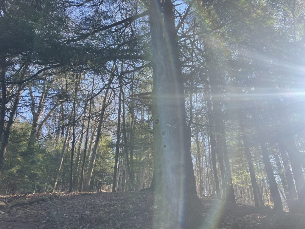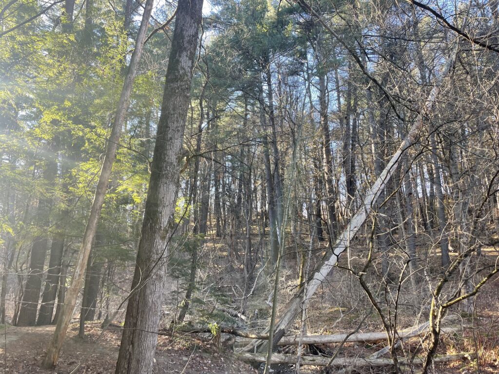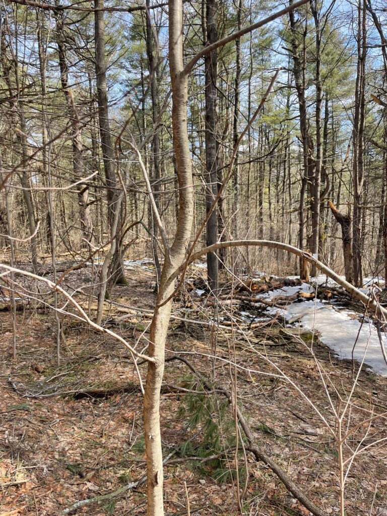 The site has changed dramatically over time, primarily due to weather. The site has gone from frozen ground to an area with grasses and moist soils. The excessive rain has also contributed to the composition of the area. My tree has sprouted leaves, and so have the trees around. American Beech, Yellow Birch, and many understory plants are among these trees. There has also been less snowfall and not as cold temperatures throughout the year. Human-caused changes could be the projects that happened in centennial woods.