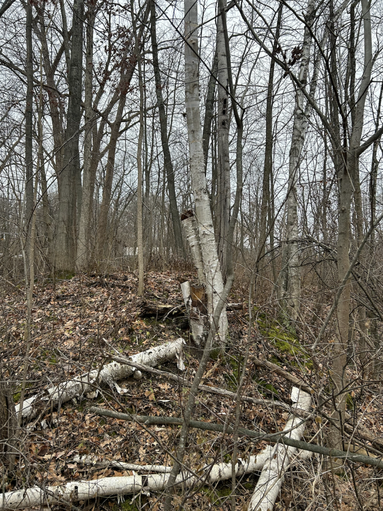 Today I spent some time in my spot absorbing the area. The wind was blowing and it had recently rained, but it was still really warm. There was fog coming off the river as well. Most of the trees in the area have dropped their leaves and are almost completely bare. There are very little coniferous trees so there is not a lot of green left. There were a few Norway Maples that still had leaves left.