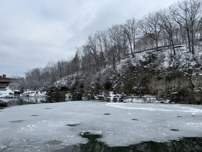 In my first post, the trees lining the river had yellow and orange leaves. Now, they are completely bare aside from a few trees that have not quite lost all their leaves yet.