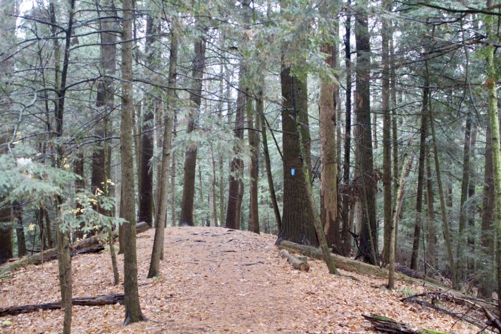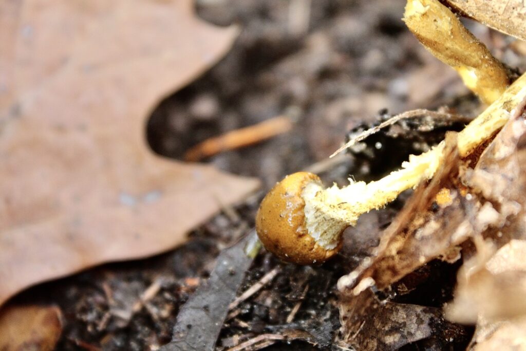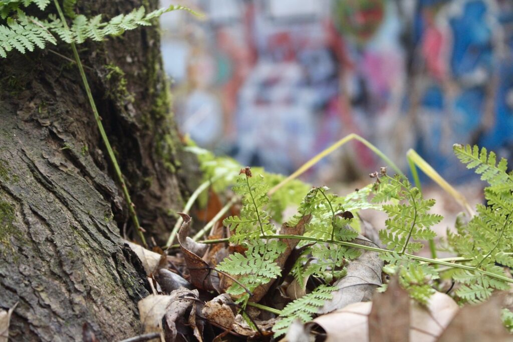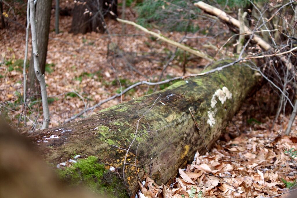 It was bittersweet visiting my Phenology Spot for the last time this semester. I saw military helicopters flying over today while walking around Centennial Woods. The foliage has pretty much all fallen besides the ferns and pine needles. Surprisingly the leaves covering the ground have stayed fairly consistent but are definitely starting to decompose. My friend and I found a millipede today and heard birds singing in the trees. I was able to capture the sound it was making but not the bird itself. The moss also has gotten much more vibrant in color since I last came here. I found a couple mushrooms hidden under the leaves after slipping slightly on the ground. I also ran into someone who was adding more spraypaint to my Phenology spot which was interesting. I’d love to see that wall get restored back to how it was, without all the color on it because I feel like it makes a normally peaceful area feel very busy. What I have enjoyed the most about my Phenology Spot is seeing the contrast between the greenery of ferns and moss and the barren leaveless trees. I have also loved having somewhere I can go to practice photography without any other noise or distractions. It has been so fun getting outdoors and I keep finding myself not wanting to leave once I’m out there. I’m definitely starting to feel a sense of place.