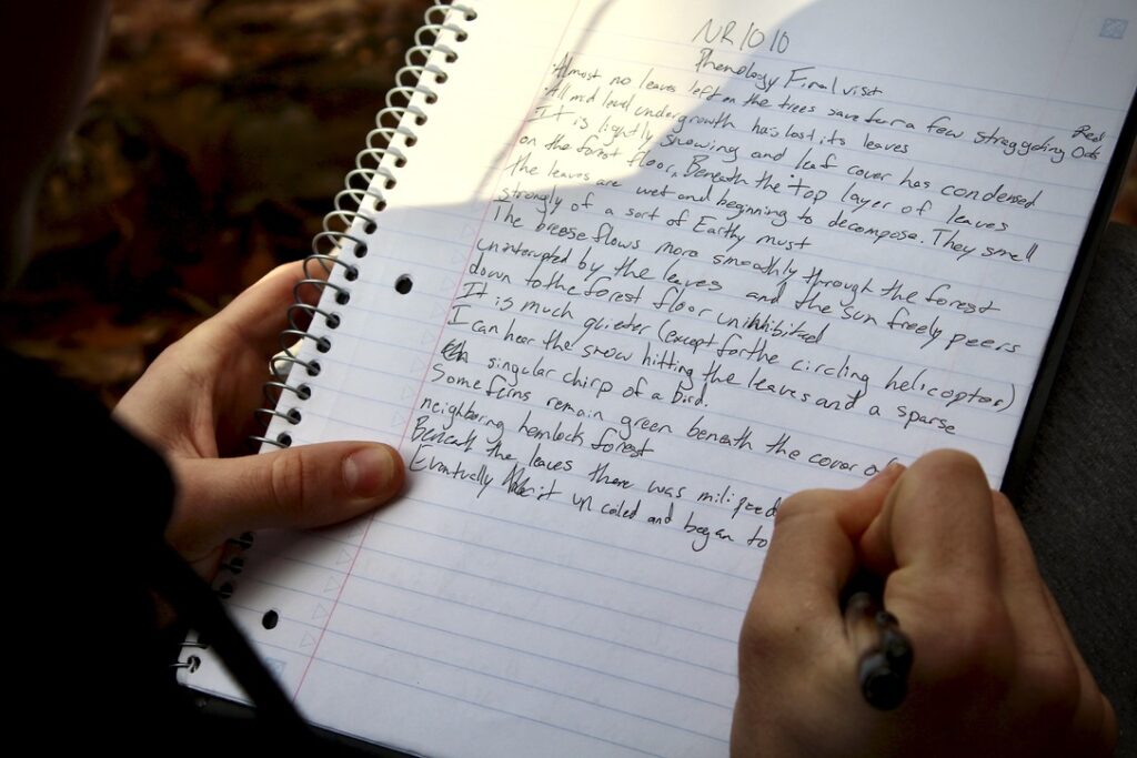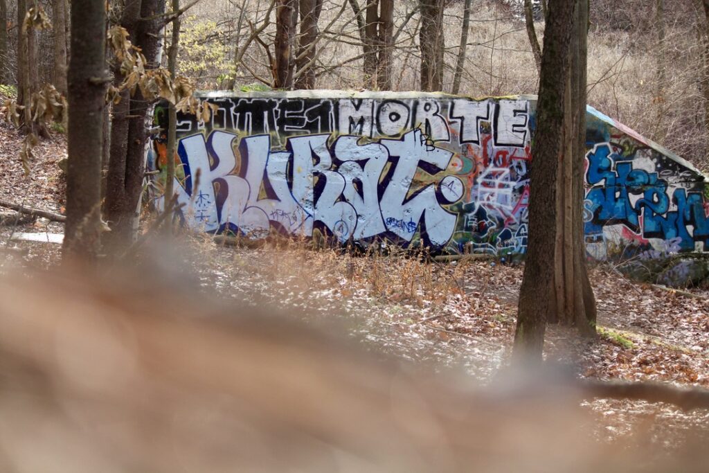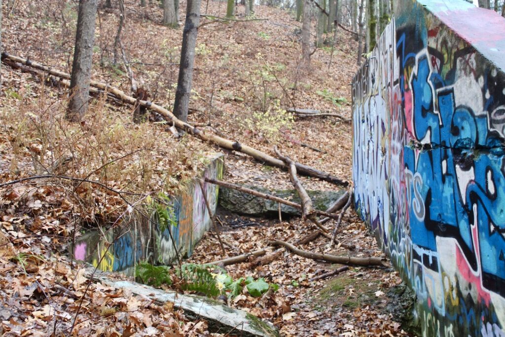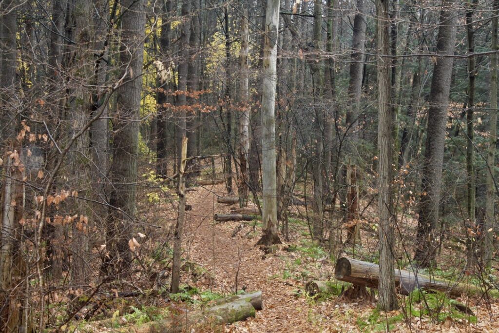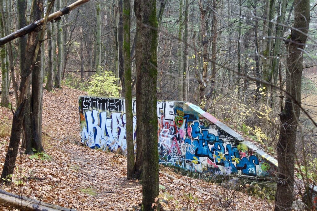 It was bittersweet visiting my Phenology Spot for the last time this semester. I saw military helicopters flying over today while walking around Centennial Woods. The foliage has pretty much all fallen besides the ferns and pine needles. Surprisingly the leaves covering the ground have stayed fairly consistent but are definitely starting to decompose. My friend and I found a millipede today and heard birds singing in the trees. I was able to capture the sound it was making but not the bird itself. The moss also has gotten much more vibrant in color since I last came here. I found a couple mushrooms hidden under the leaves after slipping slightly on the ground. I also ran into someone who was adding more spraypaint to my Phenology spot which was interesting. I’d love to see that wall get restored back to how it was, without all the color on it because I feel like it makes a normally peaceful area feel very busy. What I have enjoyed the most about my Phenology Spot is seeing the contrast between the greenery of ferns and moss and the barren leaveless trees. I have also loved having somewhere I can go to practice photography without any other noise or distractions. It has been so fun getting outdoors and I keep finding myself not wanting to leave once I’m out there. I’m definitely starting to feel a sense of place.