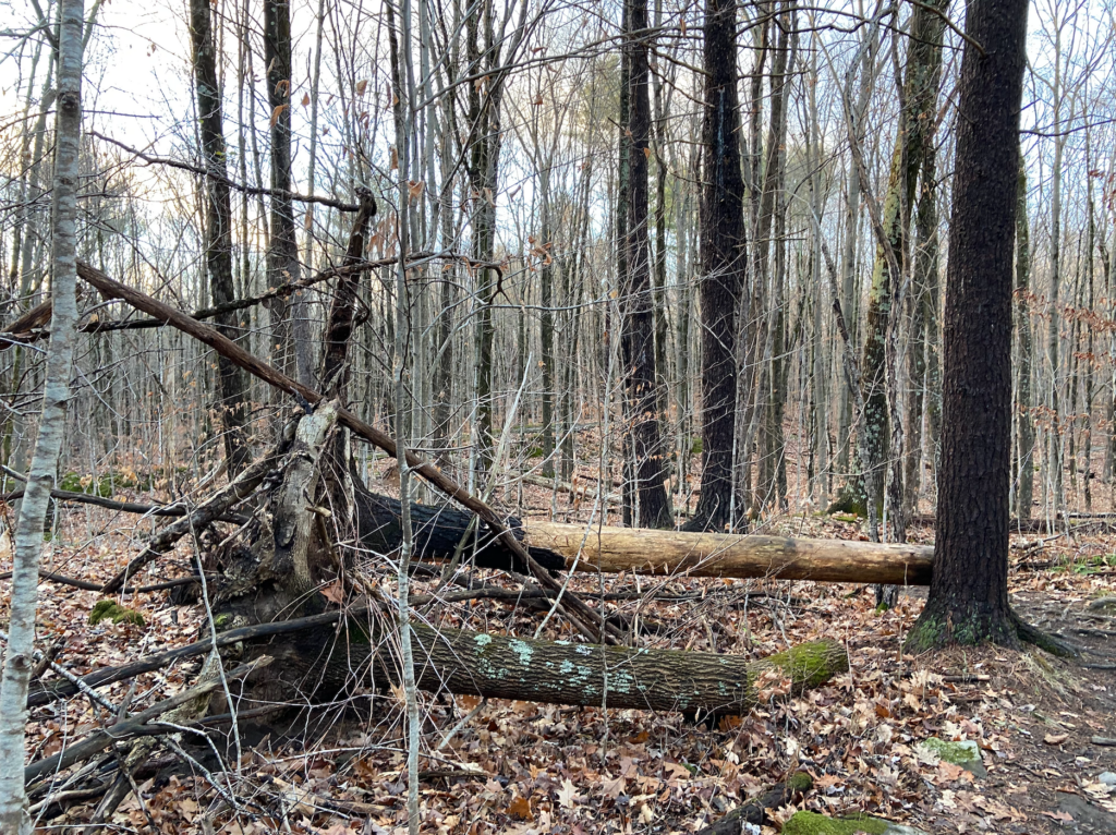 I am home for thanksgiving break so I found a new blog spot in Battell woods in Middlebury VT! These woods are right behind my neighborhood so I grew up playing in them and know them very well. The spot I chose is right off the path. There is a large moss covered rock surrounded by little American beech (Fagus grandifolia, Fagaceae) trees. The overstory consists of eastern white pines (Pinus strobus, Pinaceae), and some red oaks (Quercus rubra, Fagaceae). There is also an upturned snag with its roots sticking out. The little beech trees that surround the moss rock are very small and I think they are kind of cute. The moss rock provides all kinds of habitat for little organisms like bugs and worms. The upturned tree also provides a lot of habitat for small critters, and they in turn provide food for slightly larger critters like chipmunks. My last site was on the bank of a stream, this site is nowhere near water. This site is also much closer to the path than the last site. I think that this affects the number and species of animals that will pass through the site. My previous site also had maple trees and buckthorn, this site has neither of those.