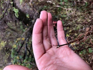 The second species I found is commonly known as Mouse-ear Chickweed. This plant is usually used as a microgreen, and can be paired with leafy salads or sautéed like spinach. I had no place to cook the chickweed, so I ate it right from the ground. Not bad!