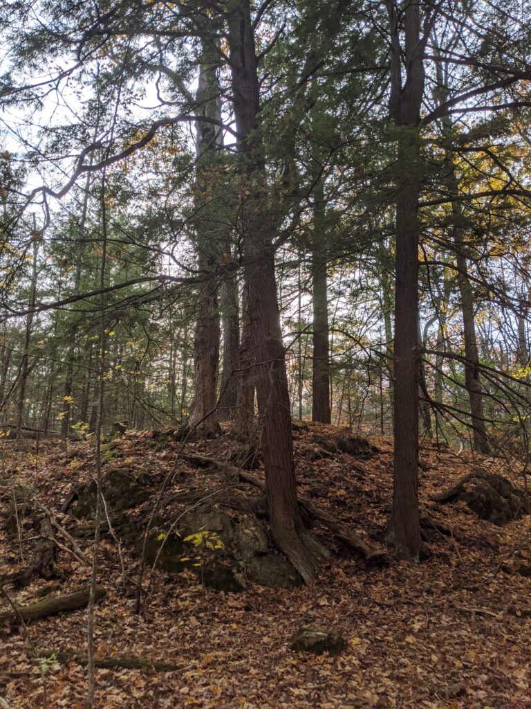 Nature and culture are very intertwined at my place because of the land use history of the area. First of all, it is now a somewhat heavily used area of recreation and education which is a way that culture and nature are intertwined. However, the land use history of it being used as a quarry, and being the only protected forested area of a larger agricultural property, shows how much nature and culture go hand in hand. Additionally, it is a small forest tucked right in next to Burlington High School, Rock Point, and developed residential areas.