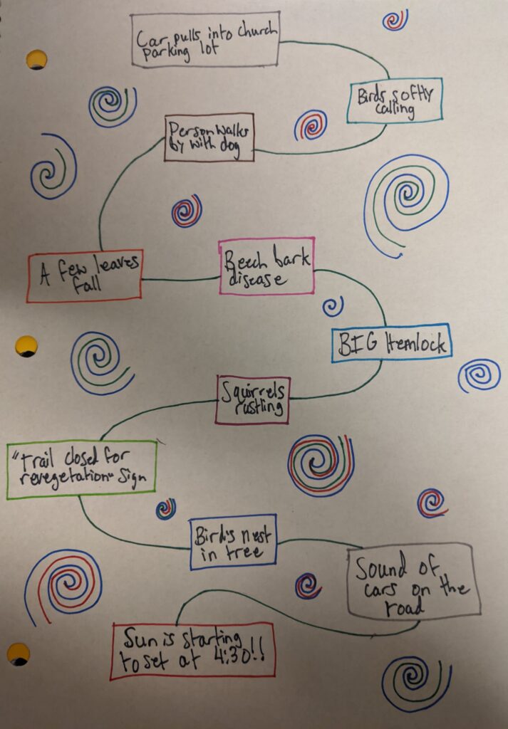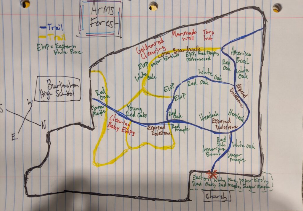 I definitely do consider myself at least somewhat apart of Arms Forest. I feel that because I have been going there frequently over the past year, and observing the area closely, this makes me intimately tied to the nature-human connection of that place. Also, I have felt very connected to the changing of the seasons this year because of this project, and especially at Arms Forest. I think we are always a part of all the natural spaces we interact with, but it is just about realizing that. I have definitely realized that I am a part of this area in particular, but also the whole socio-ecological system. It has been a very valuable and eye opening experience.