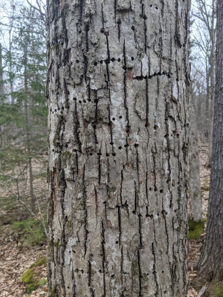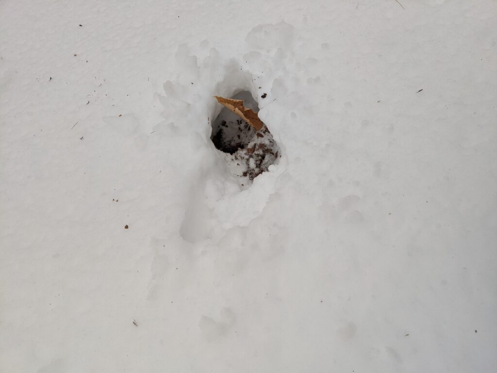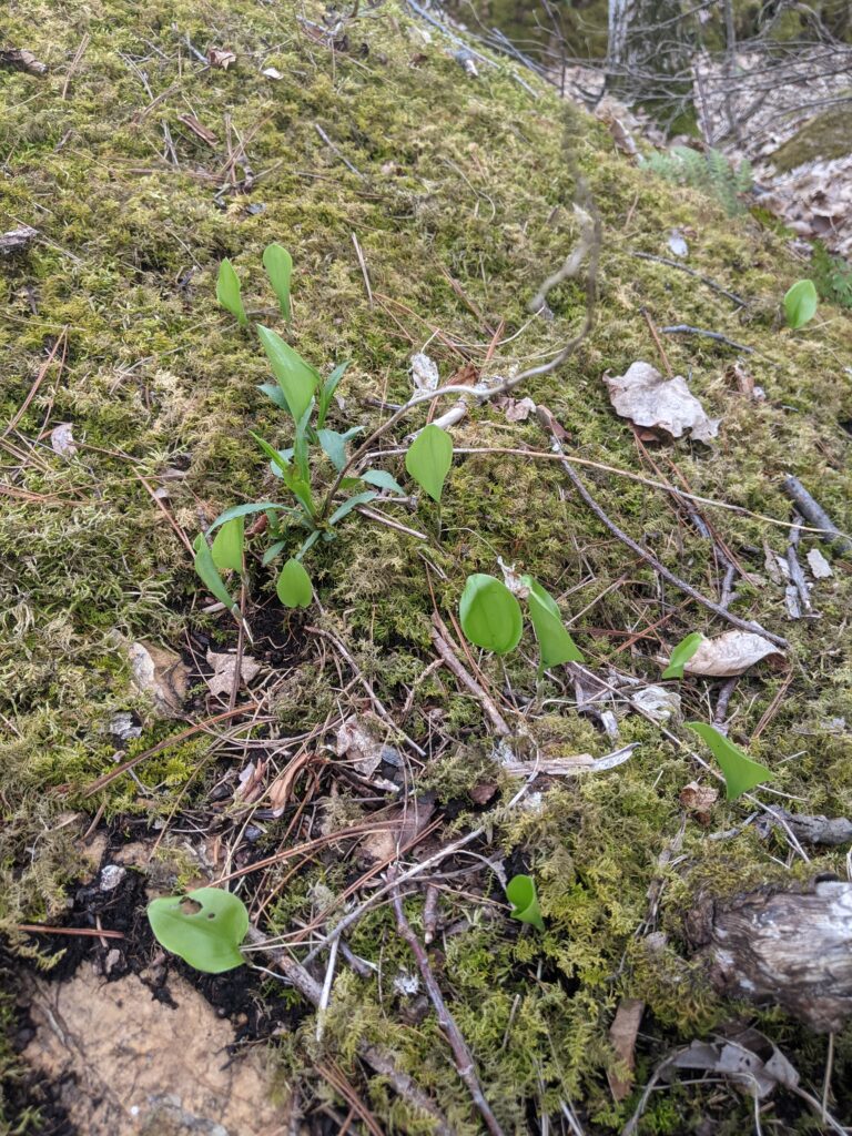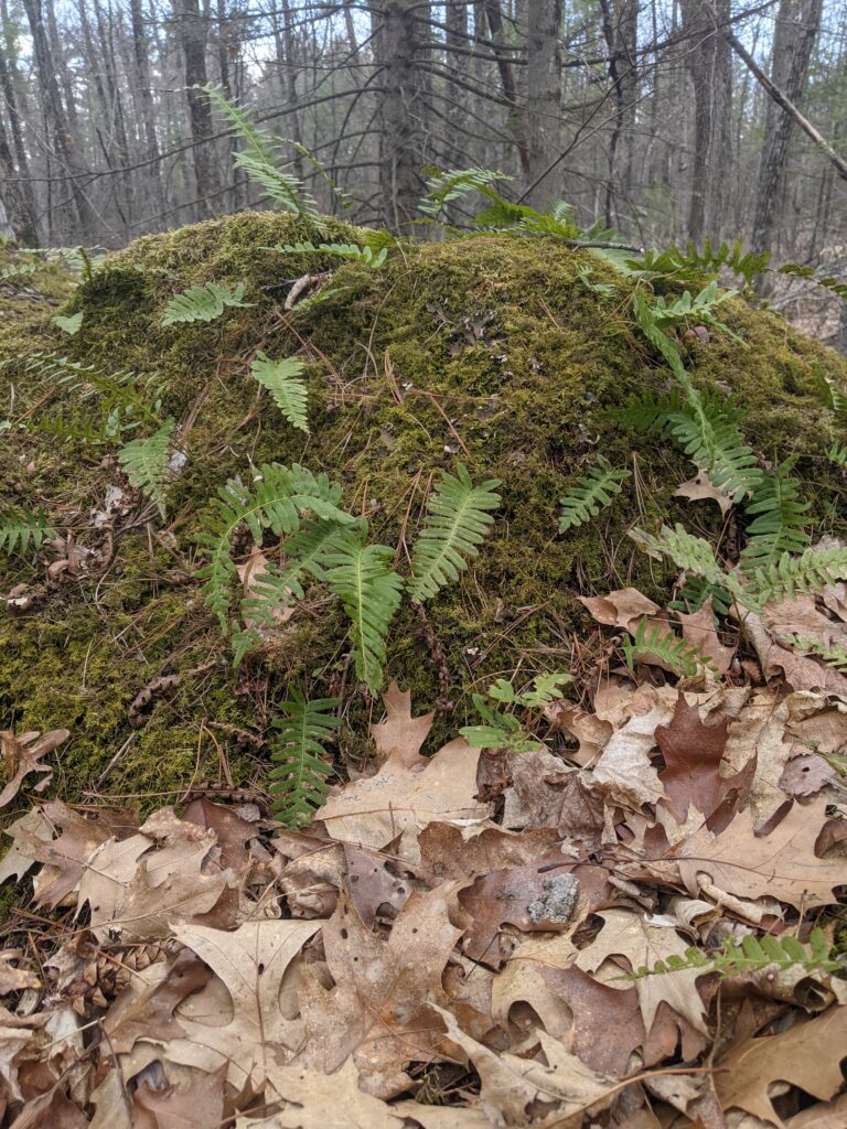 There was an incredible amount of change in this last visit. Everything is turning green!! Most understory trees are leafing out and the empty space of leafless trees are starting to fill in. There is also a lot of ground level herbaceous plants such as ferns, horsetails, flowers, and other kinds that I did not identify. There wasn’t a huge increase in wildlife activity that I was able to notice. However, there were a lot more insects out such as various flies, bees, and other kinds. I also saw a garter snake which was super cool. It was oddly calm around me and Emma. We got really close to it and it didn’t slither away. We were thinking about trying to pick it up but figured that might be a bad idea. The it seemed like the oak trees are a little later to leaf out, as the only trees I really saw leafing were beech, maple, and I think it was an ironwood. There were also some beautiful flowers such as a Jack in the pulpit and red columbine.