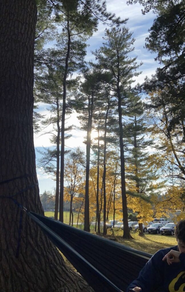 Before I talk about the history of the pines themselves I thought I would talk about my history first. I started going to the pines at the beginning of the school year because my roommate told me it was a great spot to hammock, hangout with people, and sometimes do homework. I spent a lot of time sitting in a hammock and making friends, and it was actually the place that I cultivated a lot of long lasting relationships. I have a deep sentimental connection to the pines and that is definitely one of the reasons I chose it to be my phenology spot.