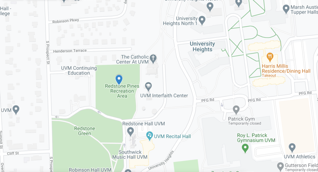 Hello! this is a blog about the Phenology of the Redstone Pines. I will be exploring how the area will change (or not change) over the course of NR 1. The Redstone Pines are located in between the Redstone campus and the Athletic campus at UVM. For me, all I have to do to get there is walk out of Harris and pass the Interfaith Center and I’m practically there. I chose this spot because I have already spent a lot of time sitting there in a hammock and doing work. I really enjoy being there and would love to get to know the area better. I also chose it because of the convenience because I lack a mode of transportation besides walking. In the Redstone Pines, there are of course a lot of Northern White Pines. Along with this there are various other species such as cedars and a few invasive species along the edges.