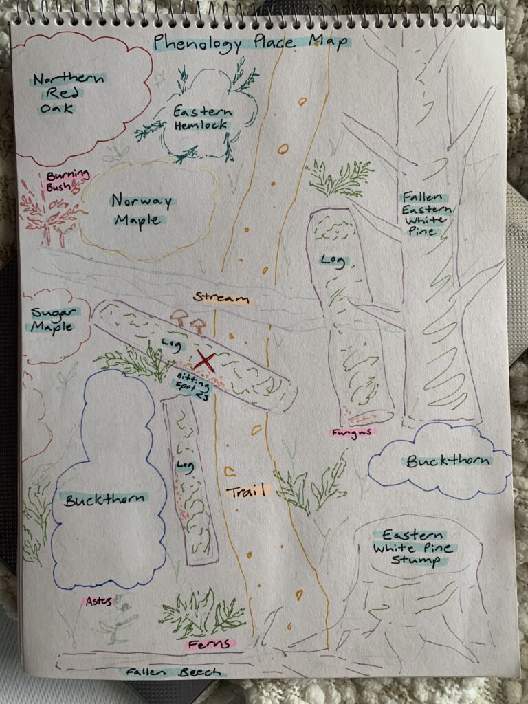 This week, I visited my place with the intention to observe as much as I could about the nature of my spot. I ended up delegating a few minutes to focus on each of my five senses– here is what I noticed!